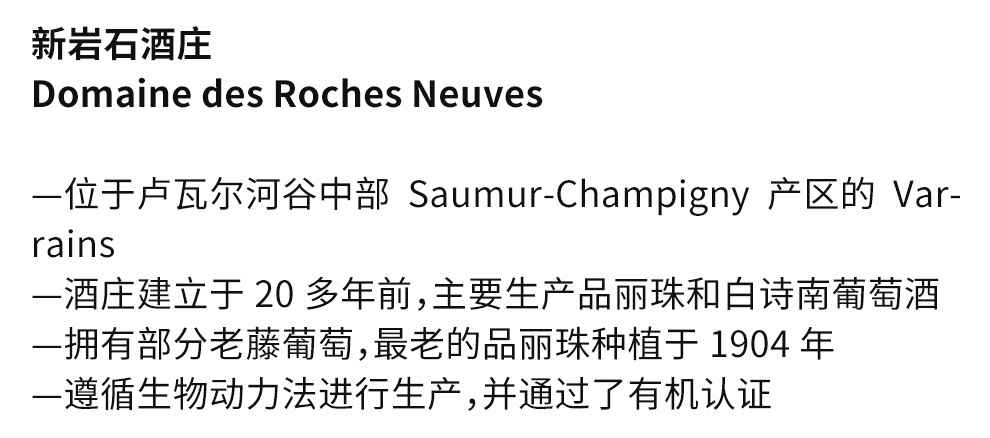 新岩石酒庄(Domaine des Roches Neuves)位于索米尔产区(Saumur)