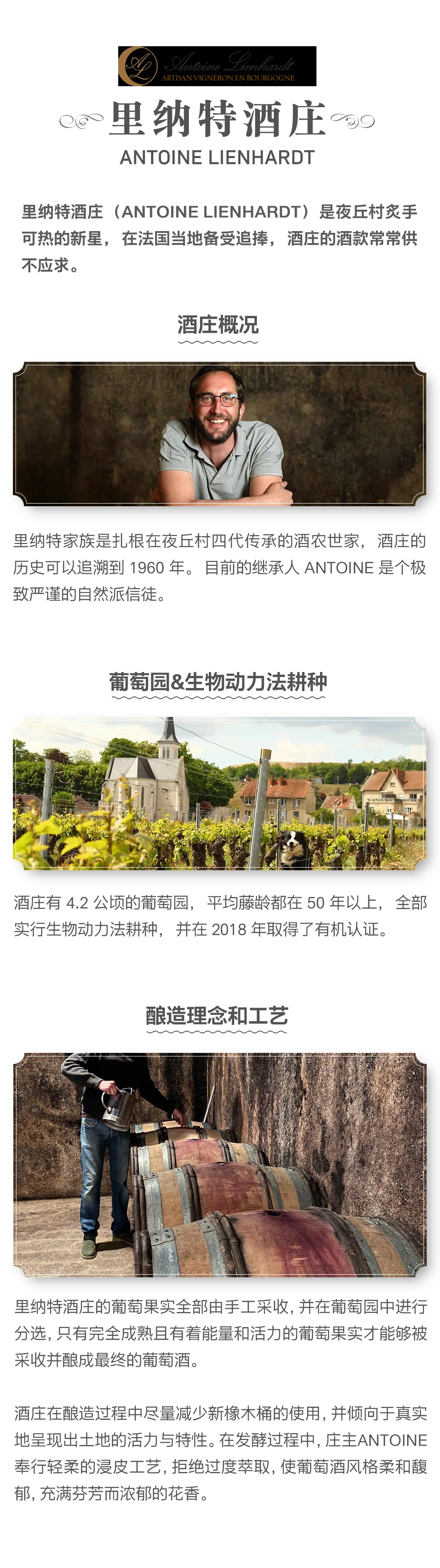 里纳特酒庄(ANTOINE LIENHARDT)是夜丘村炙手可热的新星,在法国当地备受追捧,酒庄的酒款常常供不应求。