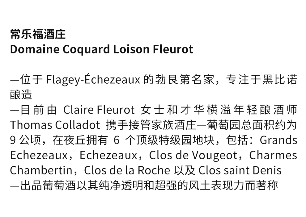 常乐福酒庄在夜丘拥有6个顶级特级园地块,包括:Grands Echezeaux,Echezeaux,Clos de Vougeot,Charmes Chambertin,Clos de la Roche以及Clos saint Denis。
