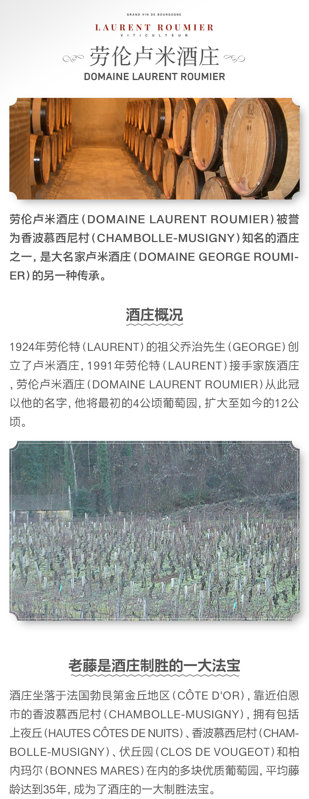 劳伦卢米酒庄(Domaine Laurent Roumier)被誉为香波慕西尼村(Chambolle-Musigny)知名的酒庄之一,是大名家卢米庄园(Domaine George Roumier)的另一种传承。