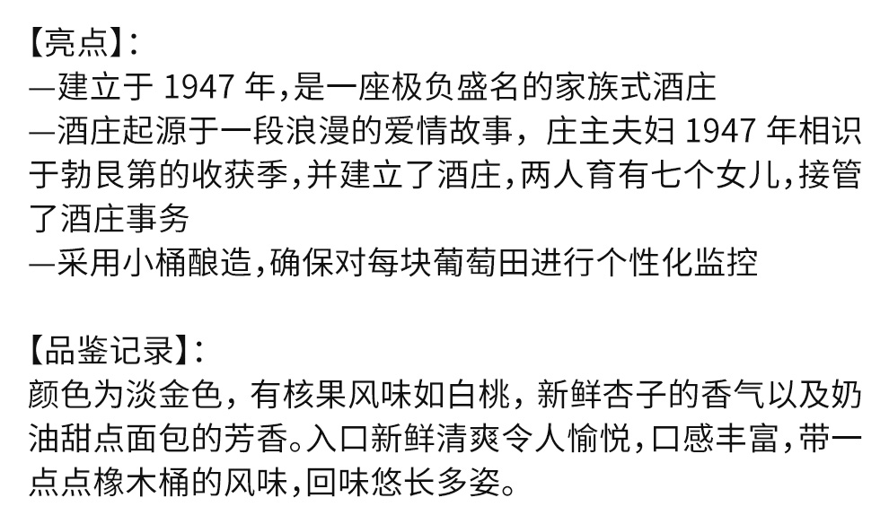 6. 购买新酒请注意:由于新酒尚未装瓶,酒品展示图为同款酒品的不同年份照片,仅供参考。实际酒标、包装、设计等以实物为准。