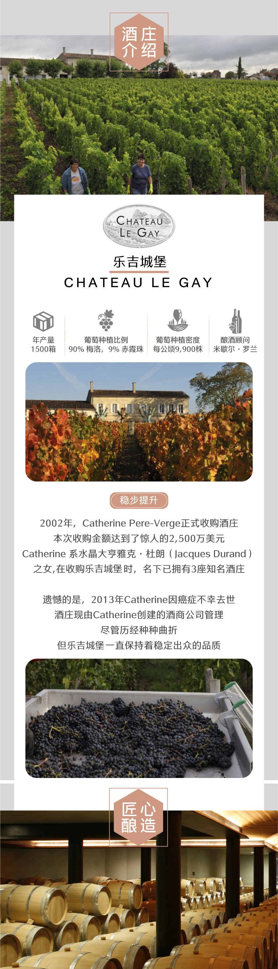 乐吉城堡(Chateau Le Gay)位于法国波尔多(Bordeaux)的波美侯(Pomerol)产区,是该产区内一座历史悠久、声名显赫的精品酒庄。