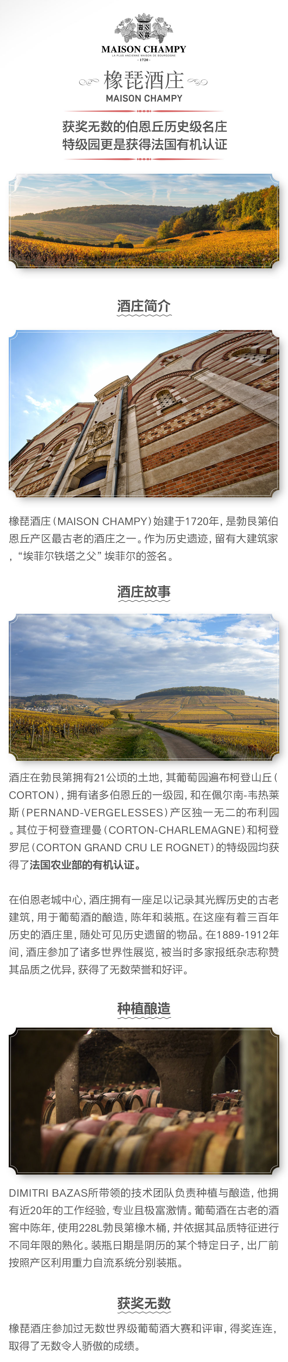 橡琵酒庄(MAISON CHAMPY)始建于1720年,是勃艮第伯恩丘产区最古老的酒庄之一。作为历史遗迹,留有大建筑家,“埃菲尔铁塔之父”埃菲尔的签名。