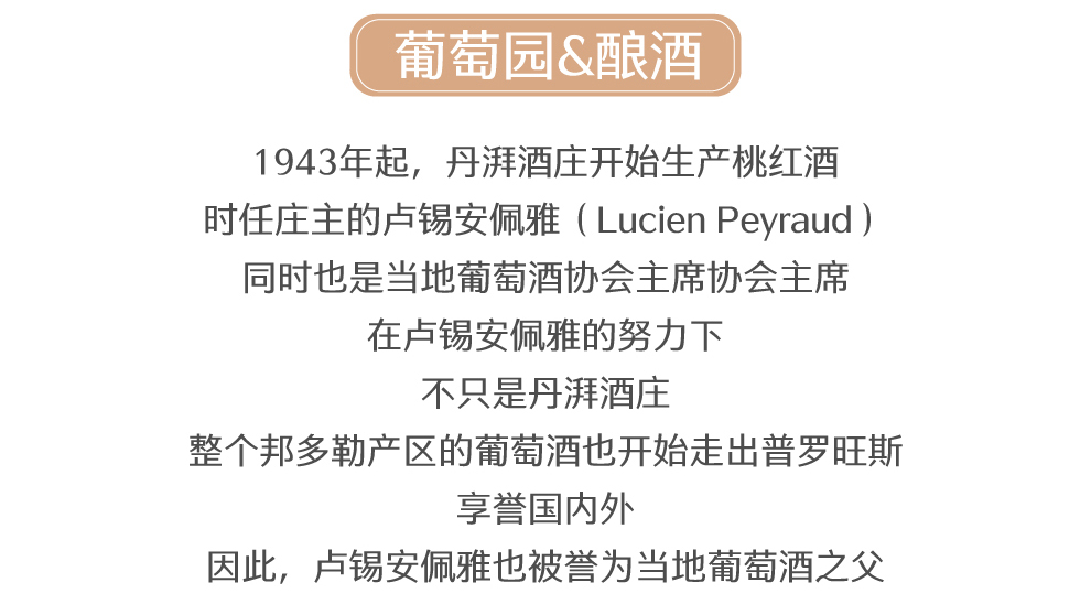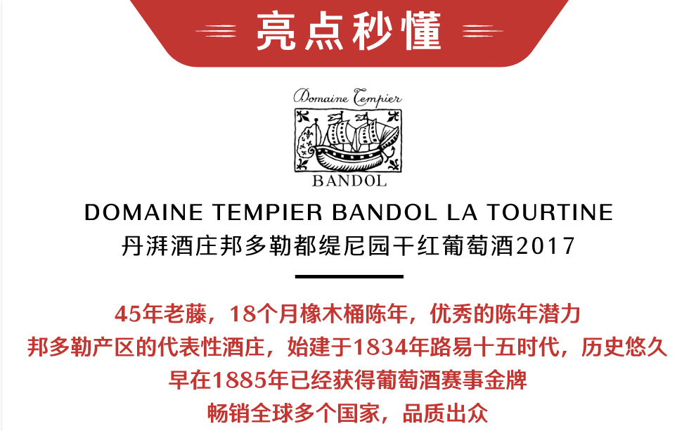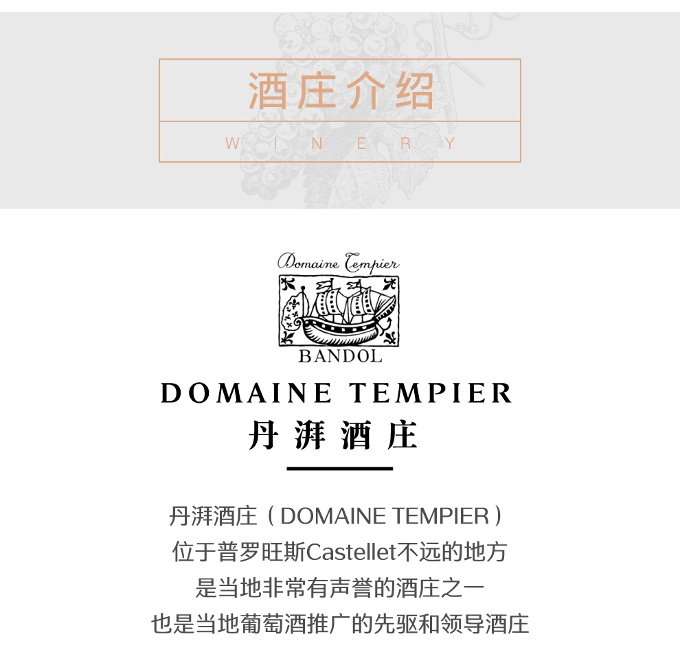 法国的历史学家认为此地区第一个葡萄园产生于公元前500年,几个世纪后,罗马人开始从该地区出口葡萄酒,装运葡萄酒的船只从附近的Bandol港起航,通过地中海输送到罗马等地。因此Domaine Tempier的酒标有个帆船。到1941年,这里通过了原产地命名的称谓。Domaine Tempier建立于1834年路易十五时代,1885年,它的产品获得了第一枚金牌。从1943年起,Domaine Tempier开始生产桃红酒,而酒庄的主人Lucien Peyraud也是当地葡萄酒协会主席协会主席。在Lucien Peyraud的努力下,该地区的葡萄酿出的葡萄酒享誉国内外,因此Lucien Peyraud成为了当地葡萄酒之父。今天酒庄的领导人是一个充满激情的年轻人Daniel Ravie, 在他的领导下酒庄仍然保持着卓越的水平。