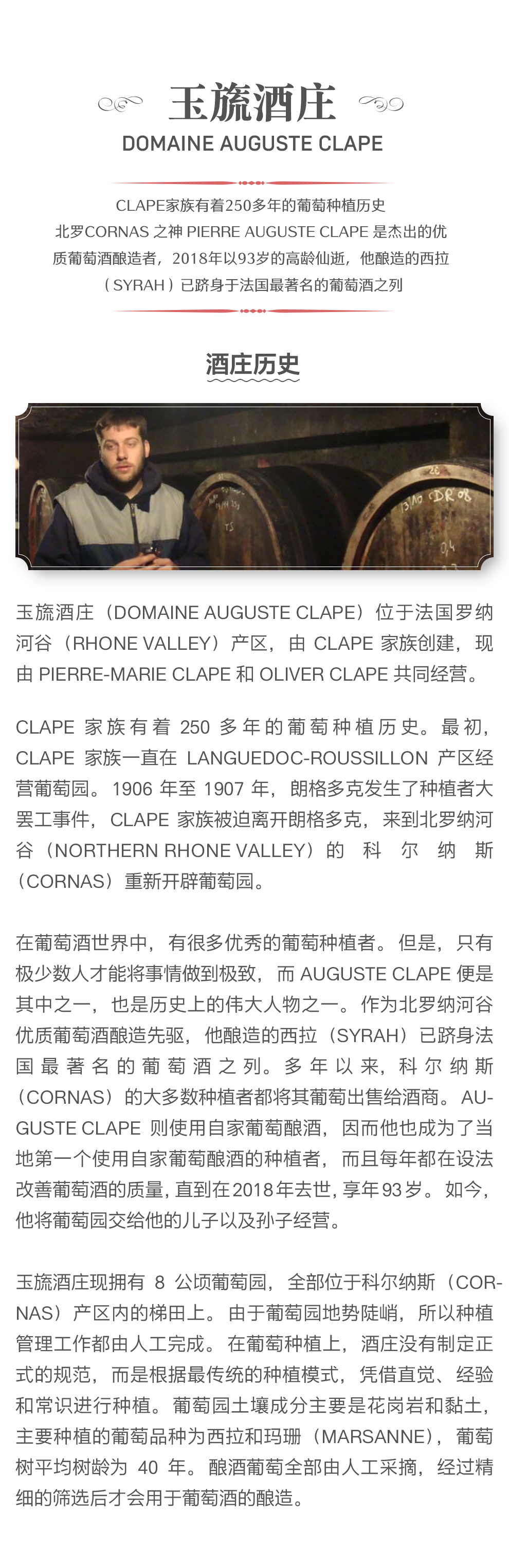 位于法国罗纳河谷(Rhone Valley)产区,由Clape家族创建,现由Pierre-Marie Clape和Oliver Clape共同经营。