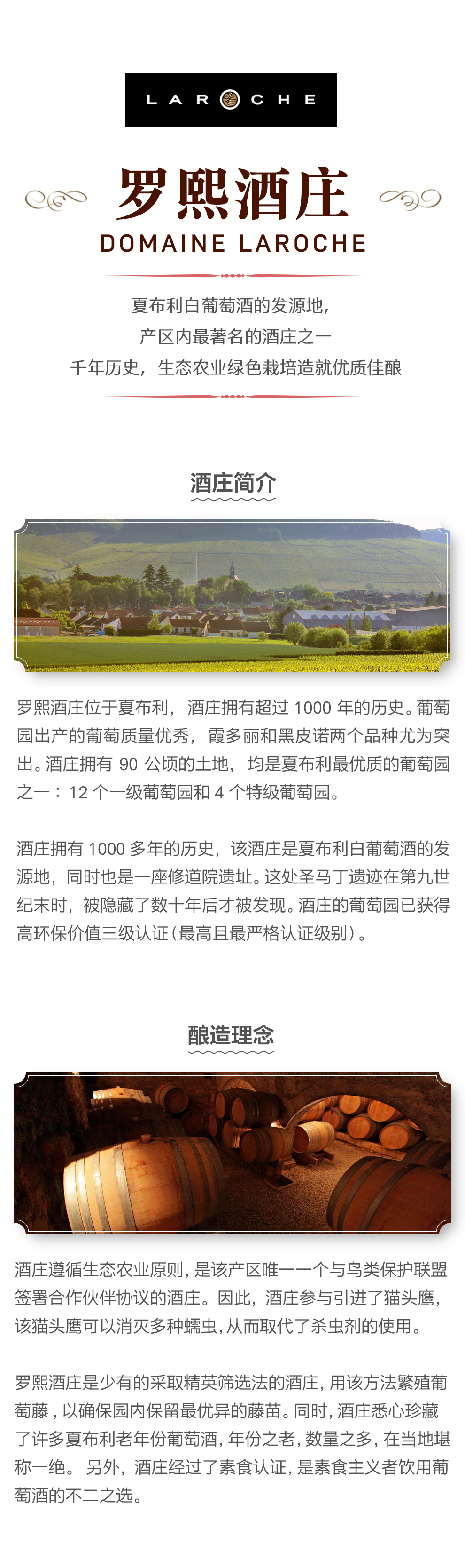 罗熙酒庄是少有的采取精英筛选法的酒庄,用该方法繁殖葡萄藤,以确保园内保留最优异的藤苗。同时,酒庄拥有夏布利产区最多的古老年份的收藏酒。另外,酒庄经过了素食认证,是素食主义者饮用的白葡萄酒的不二选择。