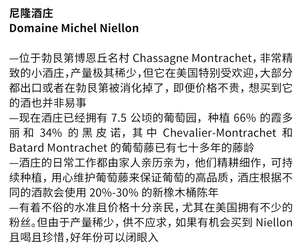 尼隆酒庄(Domaine Michel Niellon)是勃艮第产区由家族经营的小型酒庄,每年产量十分稀少,且以严格限制的配额供应全球的酒商与收藏家。