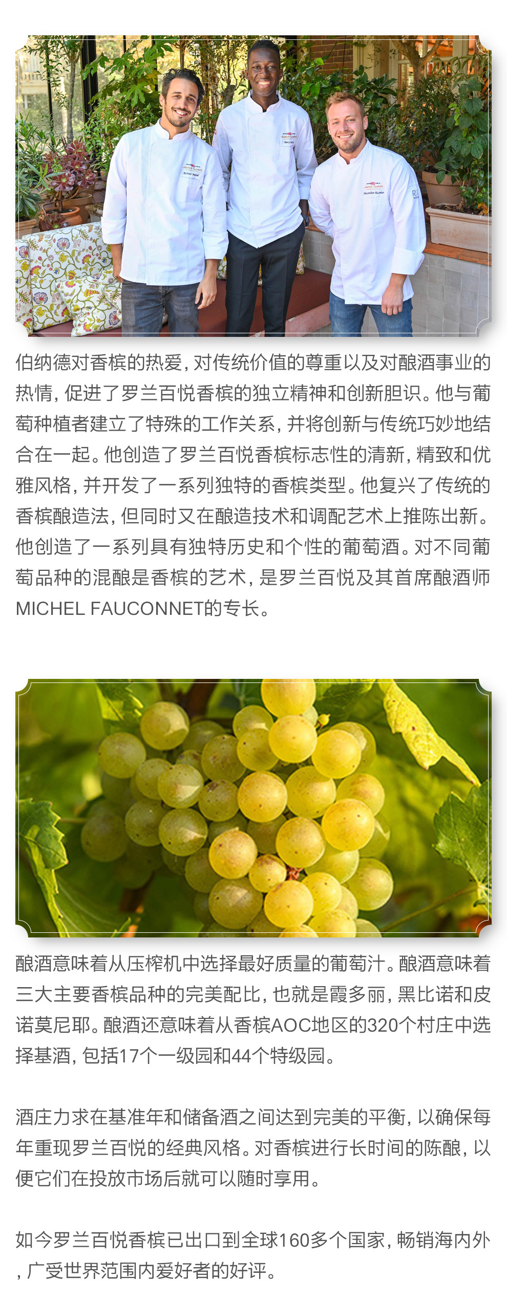对不同葡萄品种的混酿是香槟的艺术,是罗兰百悦及其首席酿酒师Michel Fauconnet的专长。