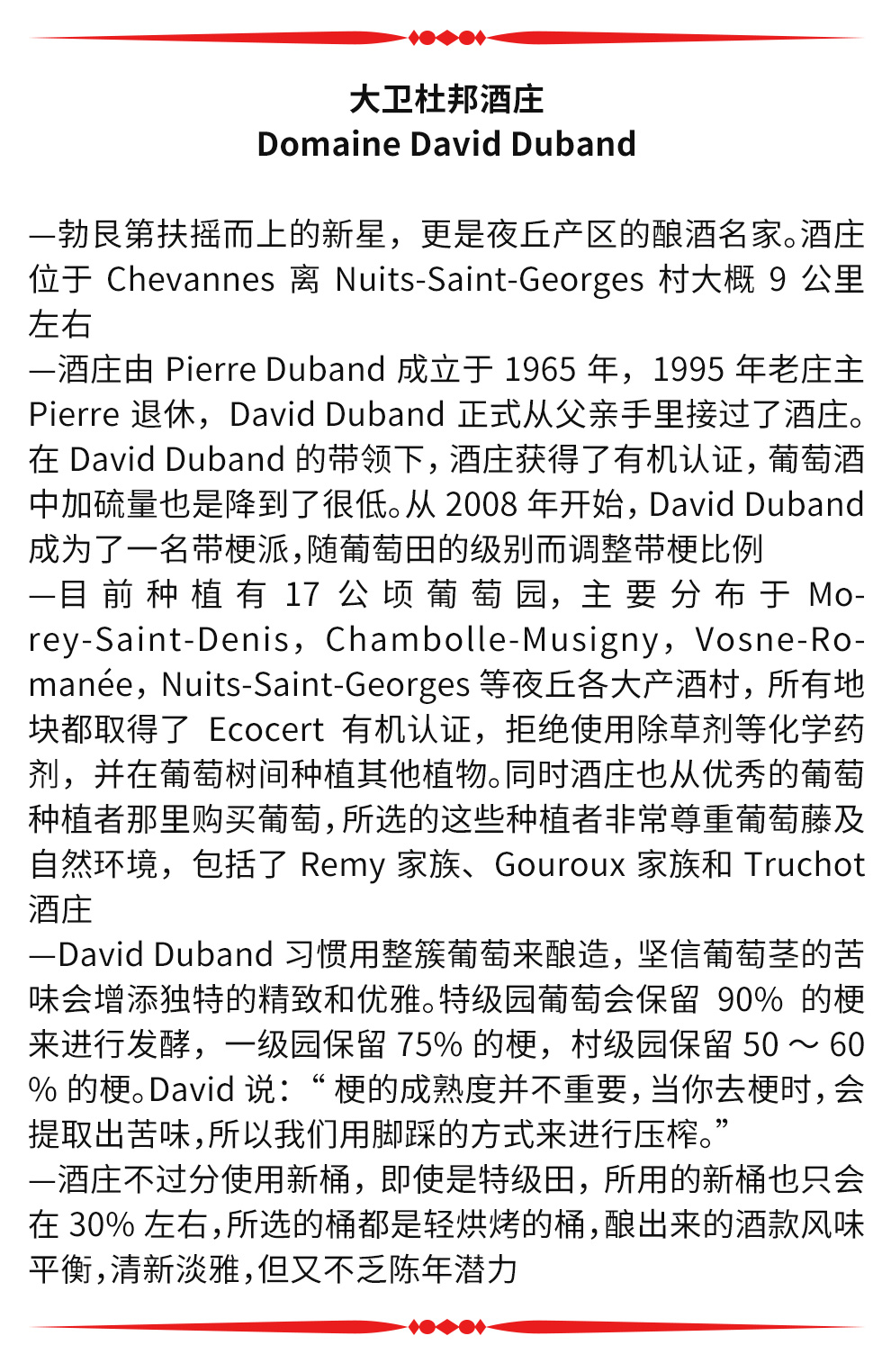 大卫杜邦酒庄(DOMAINE DAVID DUBAND)是勃艮第扶摇而上的新星,更是夜丘产区的酿酒名家,目前的庄主正是大卫杜邦先生。