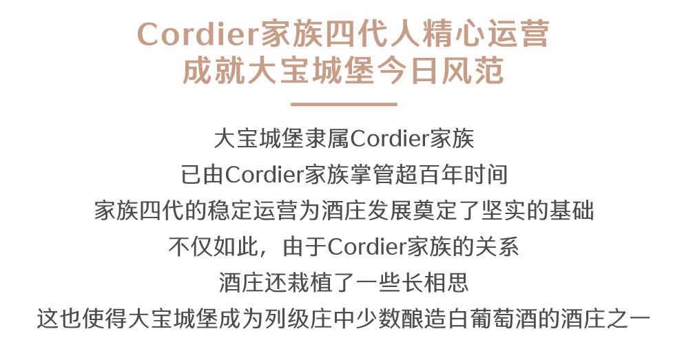 1855年,大宝酒庄凭借出色的葡萄酒和响亮的名气被评为四级酒庄。几个世纪以来,多克斯侯爵(Marquis d‘Aux)家族管理着它。之后,大宝酒庄经两度转手,于1917年被德西雷·科迪埃(Désiré Cordier)先生收购。在德西雷科迪埃先生的儿子乔治和孙子让的细心经营下,大宝酒庄的名气达到顶峰,成为波尔多最著名的酒庄之一。