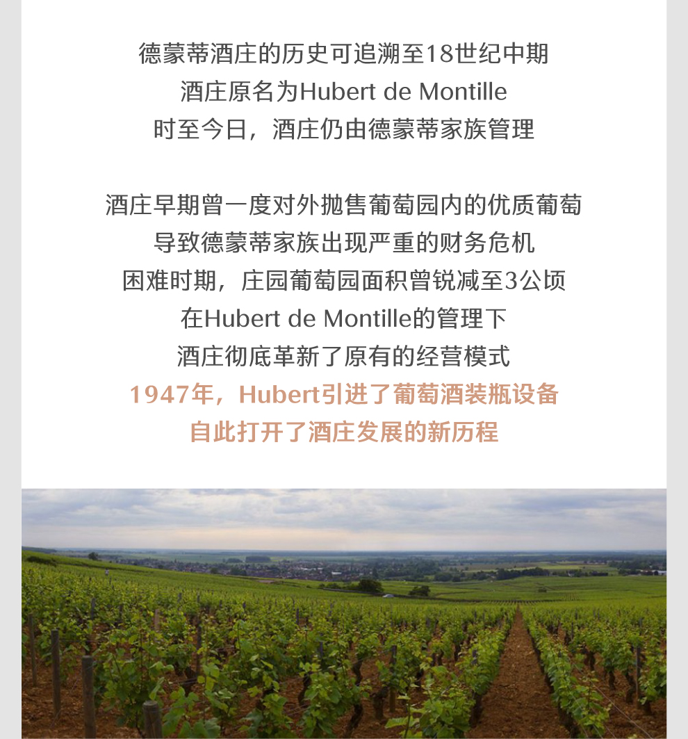 位于法国勃艮第(Bourgogne)的伯恩丘(Cote de Beaune)葡萄酒产区,现由艾尼丝•德蒙蒂(Alix de Montille)和埃迪安•德蒙蒂(Etienne de Montille)两兄妹共同管理。