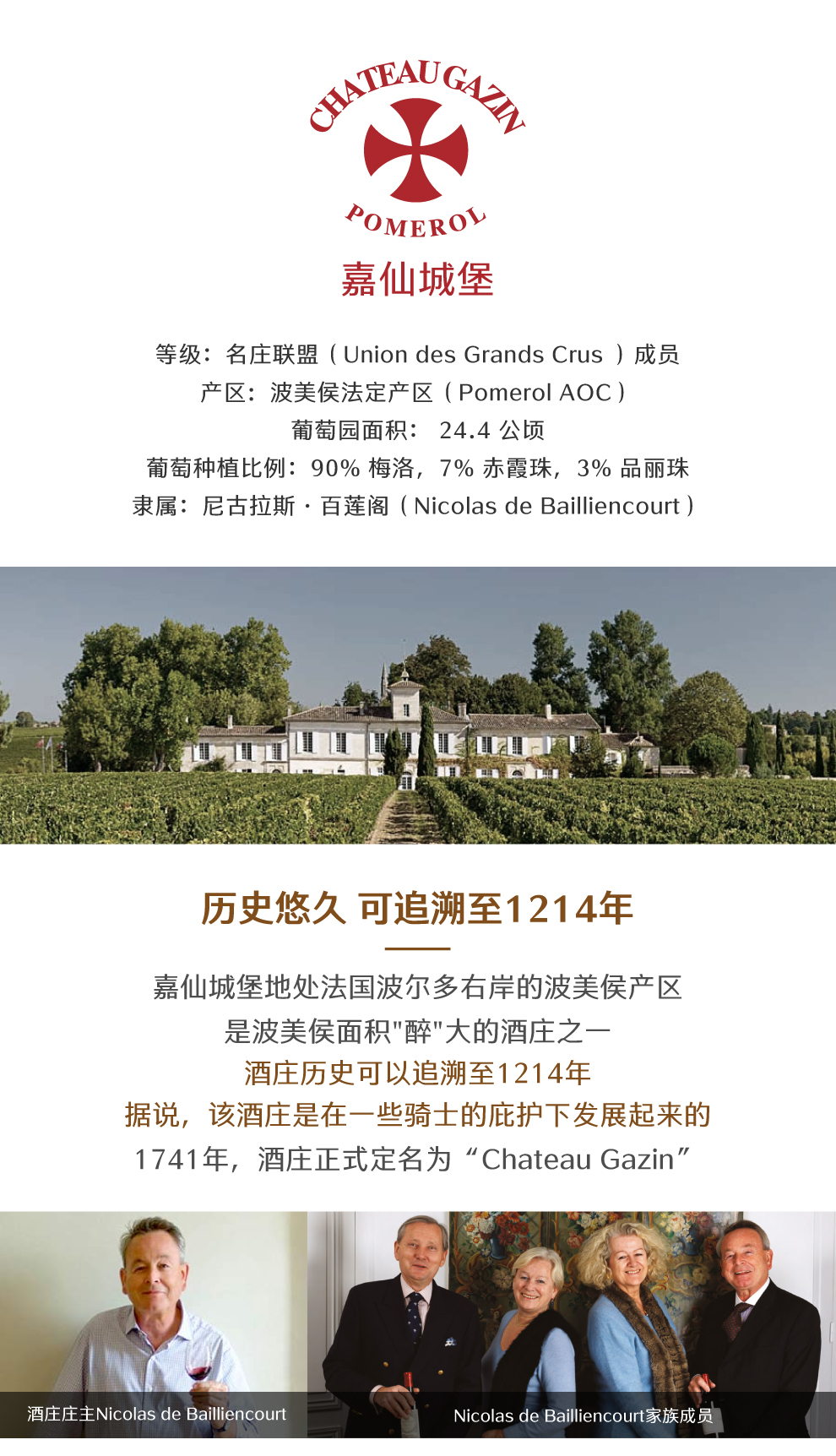 嘉仙酒庄(Chateau Gazin)地处法国波尔多右岸的波美侯产区,是波美侯最大的酒庄之一。