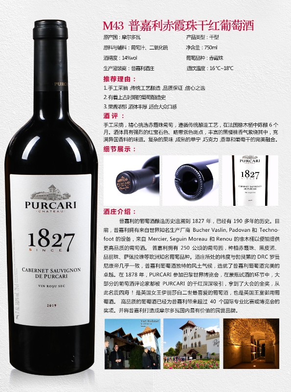 摩尔多瓦PURCARI酒庄成立于1827年,是国际著名酒庄,酒庄现为英国和罗马尼亚王室的官方供应商。产品热销欧美国家,近几年在亚洲市场销量增长较快。其产品尤其受到中日韩客户喜爱。
