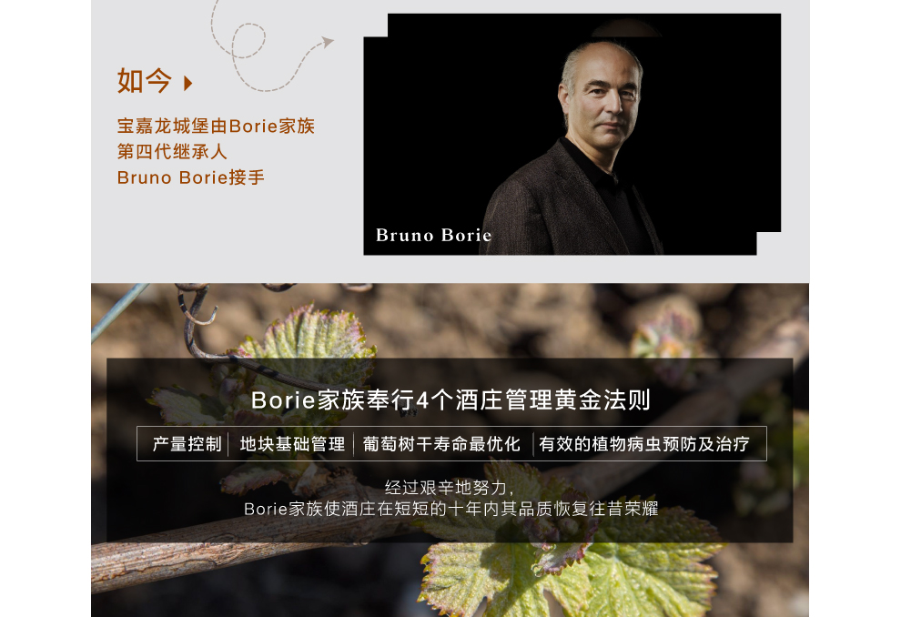 酒庄葡萄树的平均树龄为35年,种植密度为10,000株/公顷。高种植密度在葡萄株之间形成竞争,有利于降低产量,从而提高果实质量。所有的葡萄果实都通过手工采摘,经分拣和除梗后会先进行7天左右的冷浸渍(Cold Maceration),然后再进入发酵罐。针对不同地块出产的葡萄果实,酒庄在酒精发酵过程中会选用不同大小的不锈钢发酵容器并设定不同的发酵温度。为了突出纯净的果味和柔和的口感,酒庄在酿造时会轻柔地进行淋皮、压帽和倒罐,使酒液和氧气接触的同时避免萃取过多单宁。发酵结束后,酒液会进入新桶比例为75%-90%的法国橡木桶中陈酿18至20个月。