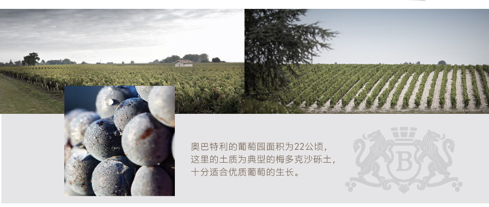 奥巴特利城堡的葡萄园坐落于波伊亚克地区,高出河面10到20米。这里的葡萄藤获益于得天独厚的深层砾石土壤,冲击岩层保证了良好的排水,使作物根系扎实,增产增收。