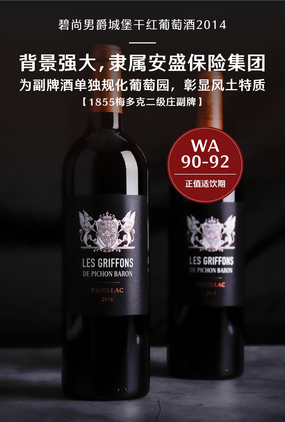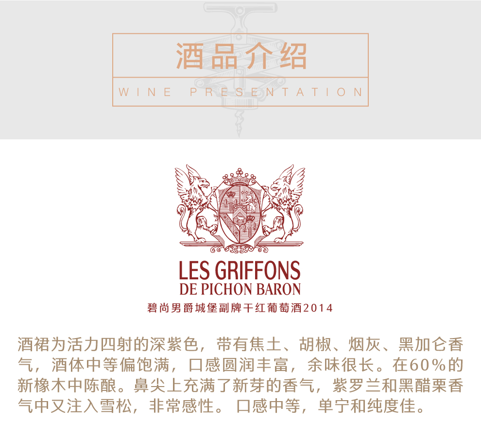 碧尚男爵城堡副牌干红葡萄酒2014