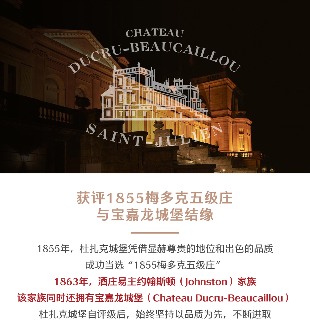 威布克(Wiebroock)家族于1841年购入了这家酒庄,并且以自己的精湛技艺使杜扎克酒庄获得了业内的认可,在1855年的波尔多评级当中跻身于“列级酒庄第5级”。1863年,已经拥有杜克·宝嘉龙酒庄(Château Ducru-Baucaillou)的约翰斯顿(Johnston)家族,又将杜扎克酒庄收归于其麾下。