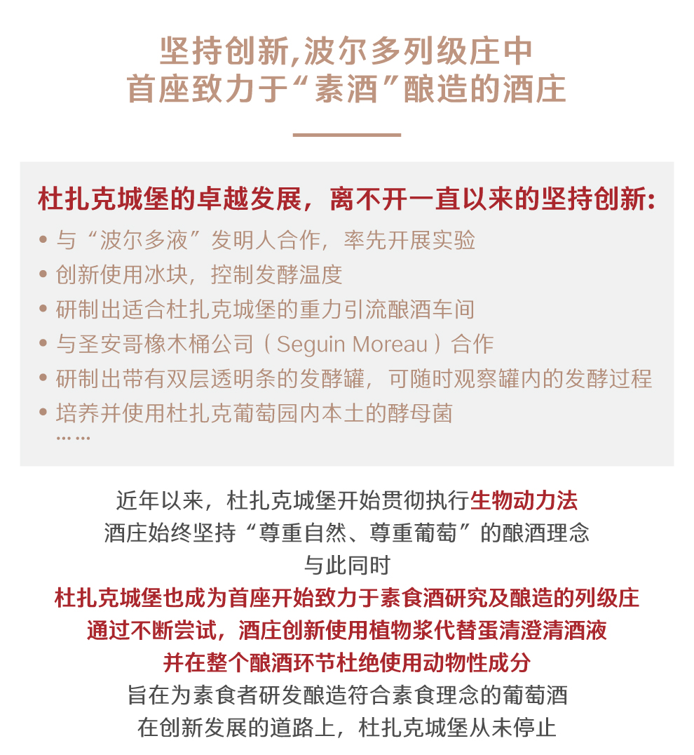 杜扎克酒庄的历史是由高瞻远瞩的人们及其创新的理念所创造的,数百年来,正是它呈现出了独特产地的精华所在。