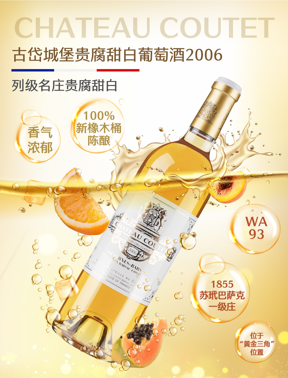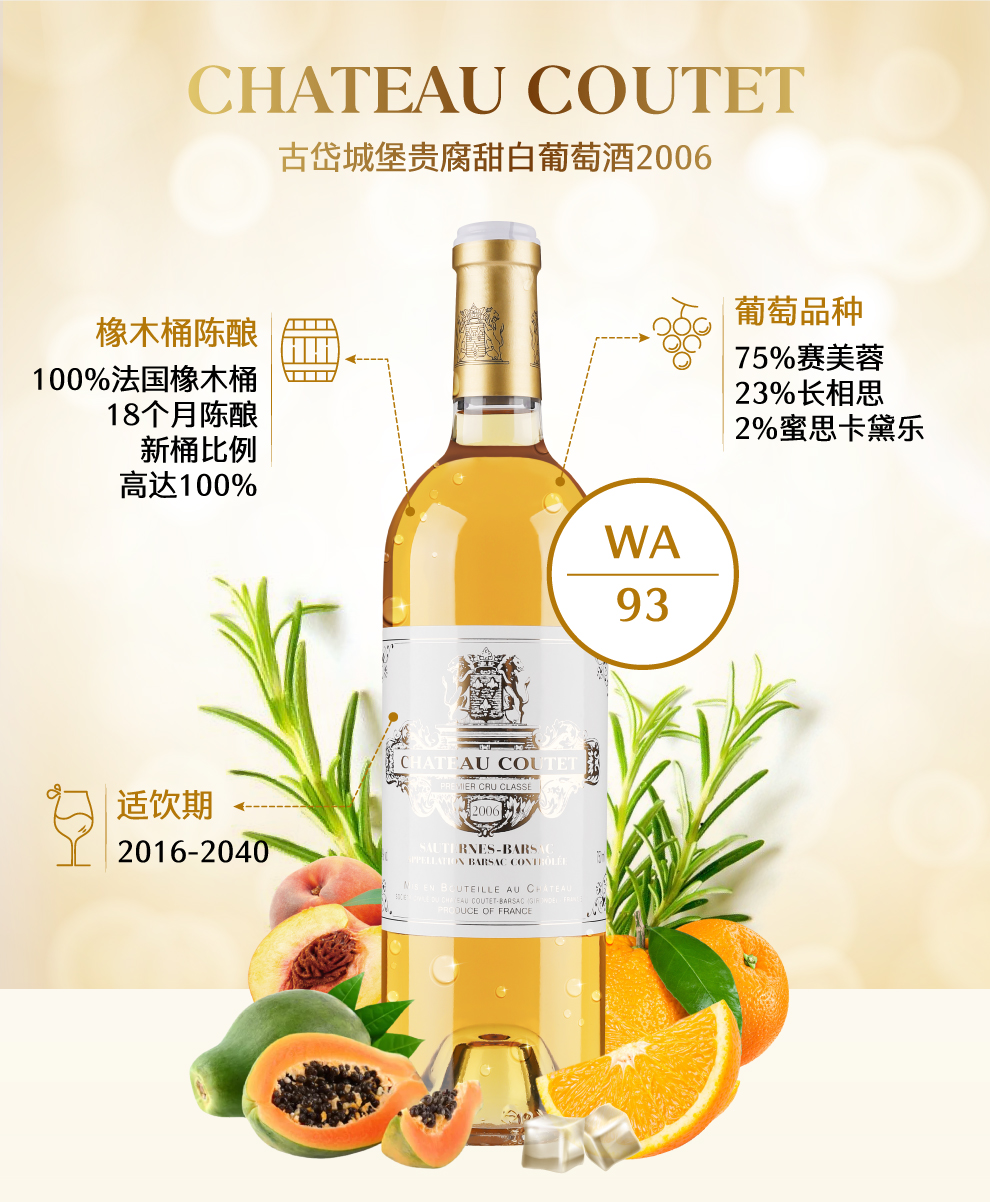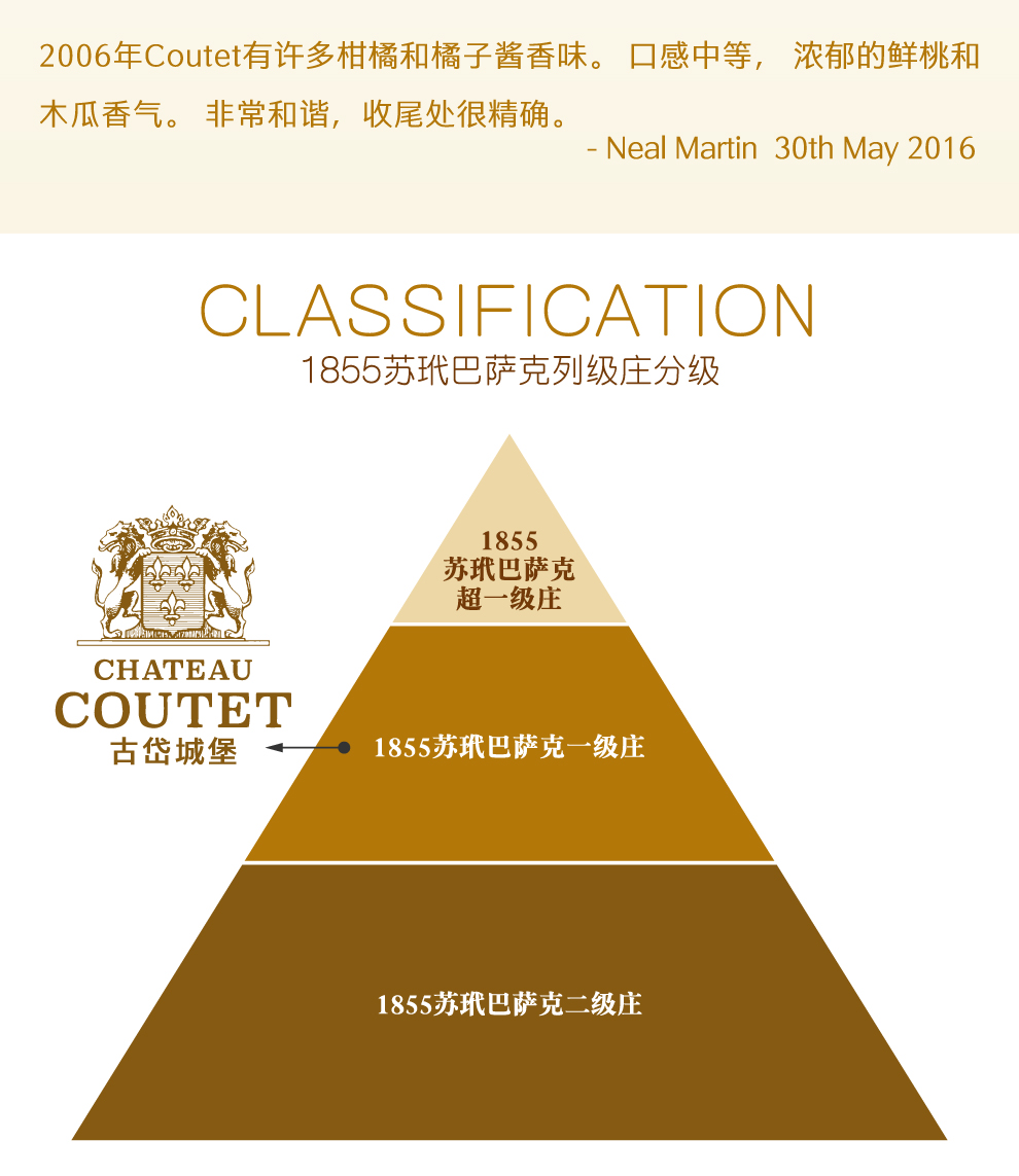 酒庄名称:古岱城堡(Château Coutet) 法定产区:巴萨克法定产区( Barsac ) 等级: 1855苏玳和巴萨克一级庄