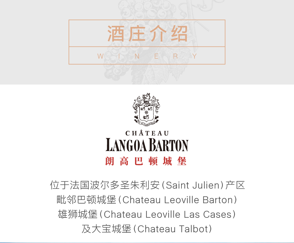 朗高巴顿城堡出产的葡萄酒常表现出优雅与精致的特点,其柔和亲切的口感,伴随着层次丰富的果香,倍受葡萄酒爱好者青睐。
