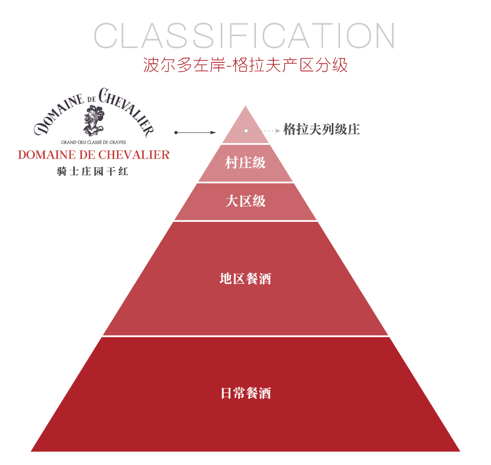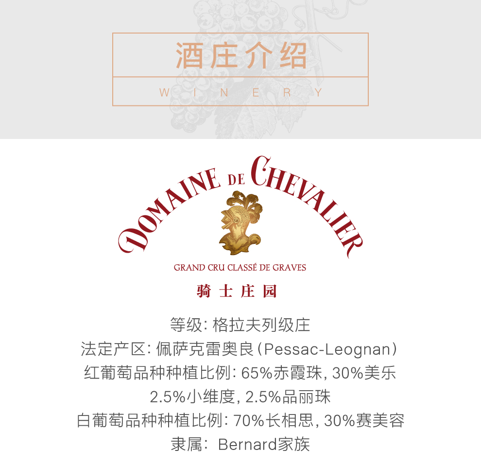 坐落于法国波尔多(Bordeaux)格拉夫(Graves)的佩萨克-雷奥良(Pessac-Leognan)产区。格拉夫仅有6座酒庄的红、白葡萄酒皆入选列级庄等级,而骑士便是其中之一。
