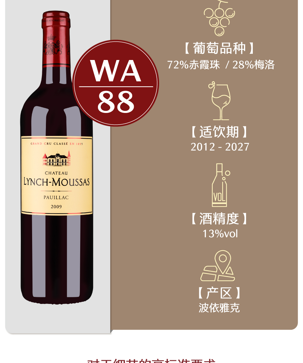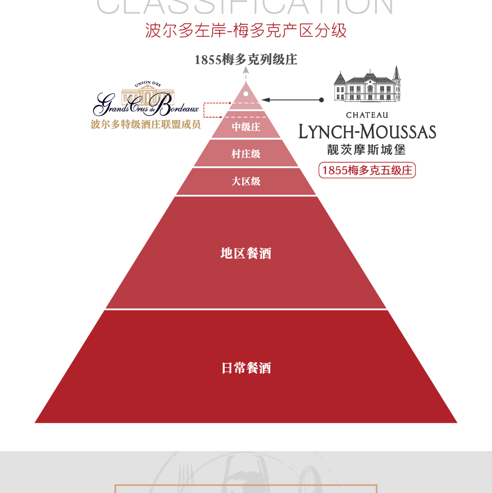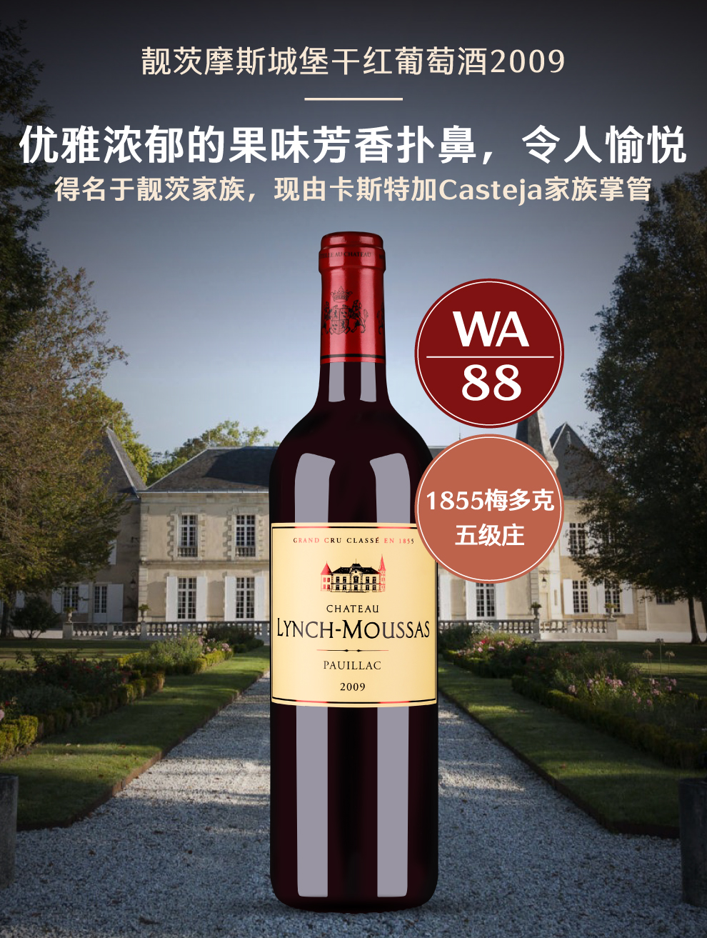 靓茨摩斯庄园(Chateau Lynch-Moussas),历史可以追溯到靓茨家族Lynch时期,一位叫做约翰-靓茨John Lynch的爱尔兰军人。他1691年离开爱尔兰,自世纪末开始便在法国定居并在此成家立业。18世纪期间,靓茨家族大量购买土地,不但拥有了波亚克的靓茨伯庄园Lynch-Bages(五级庄,通过联姻而归其名下)以及靓茨摩酒庄,而且还买下了位于玛歌区的杜扎克庄园(Dauzac)。