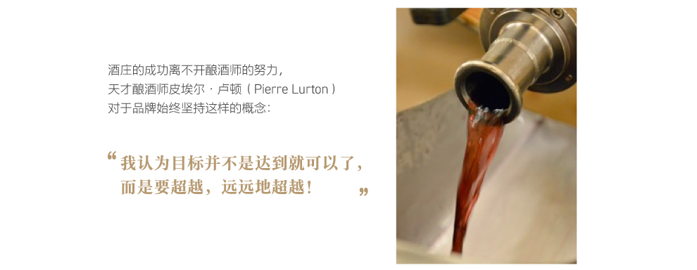 卢顿家族著名的天才酿酒师皮埃尔·卢顿(Pierre Lurton),两座顶级名庄的掌管者对于品牌始终坚持这样的概念:“我认为目标并不是达到就可以了,而是要超越,远远地超越!”