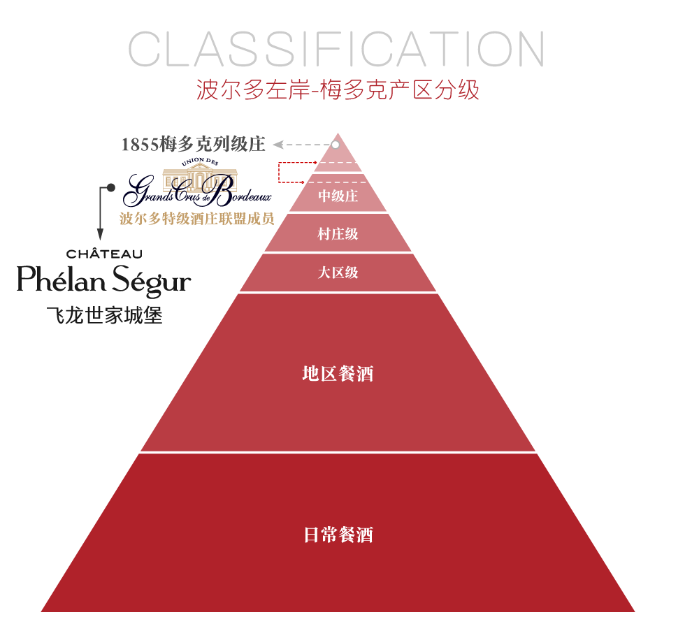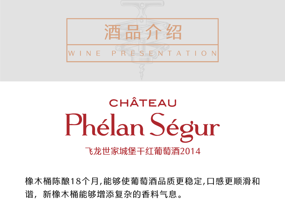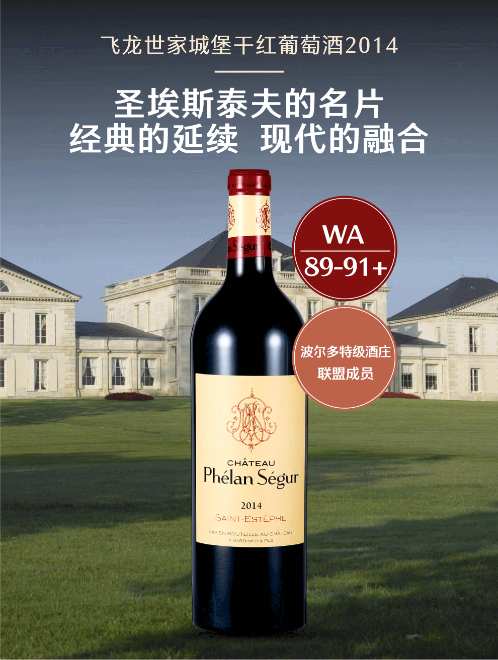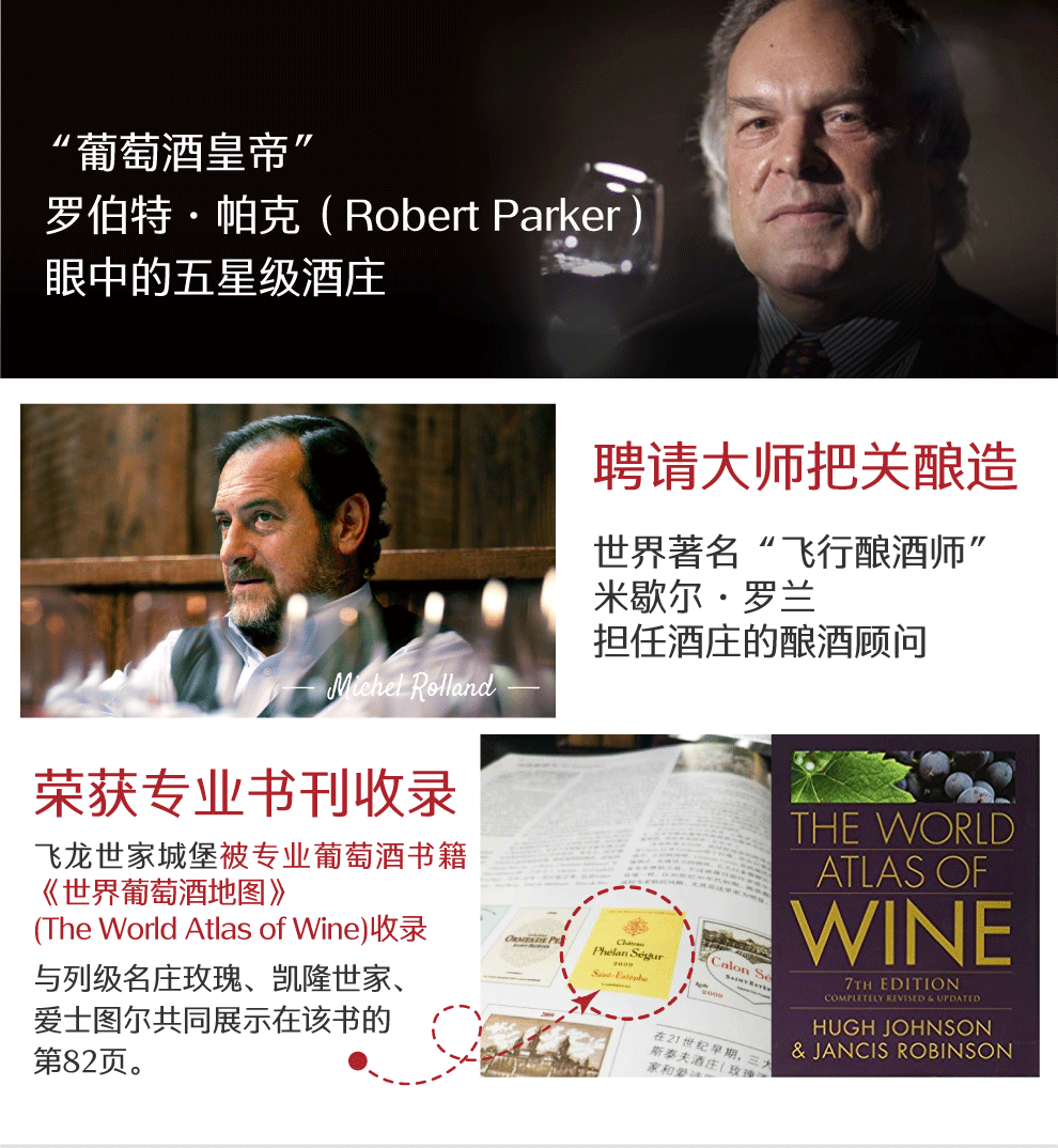 飞龙世家(Phelan Segur)酒庄获Robert Parker五星级酒庄的评级,远超过不少1855年的三、四、五级列级名庄的地位。2003年初,欧洲最权威的葡萄酒杂志Decanter评出全世界范围内最超值的五十大名酒中,飞龙世家榜上有名。飞龙世家的酒性正如她们的主人一样:大方、开扬、和顺、自然、平易近人。她中度酒体,单宁平和,木香丰富而且饱满,既可年轻饮用,又可陈放二十年(好年份可更长)。