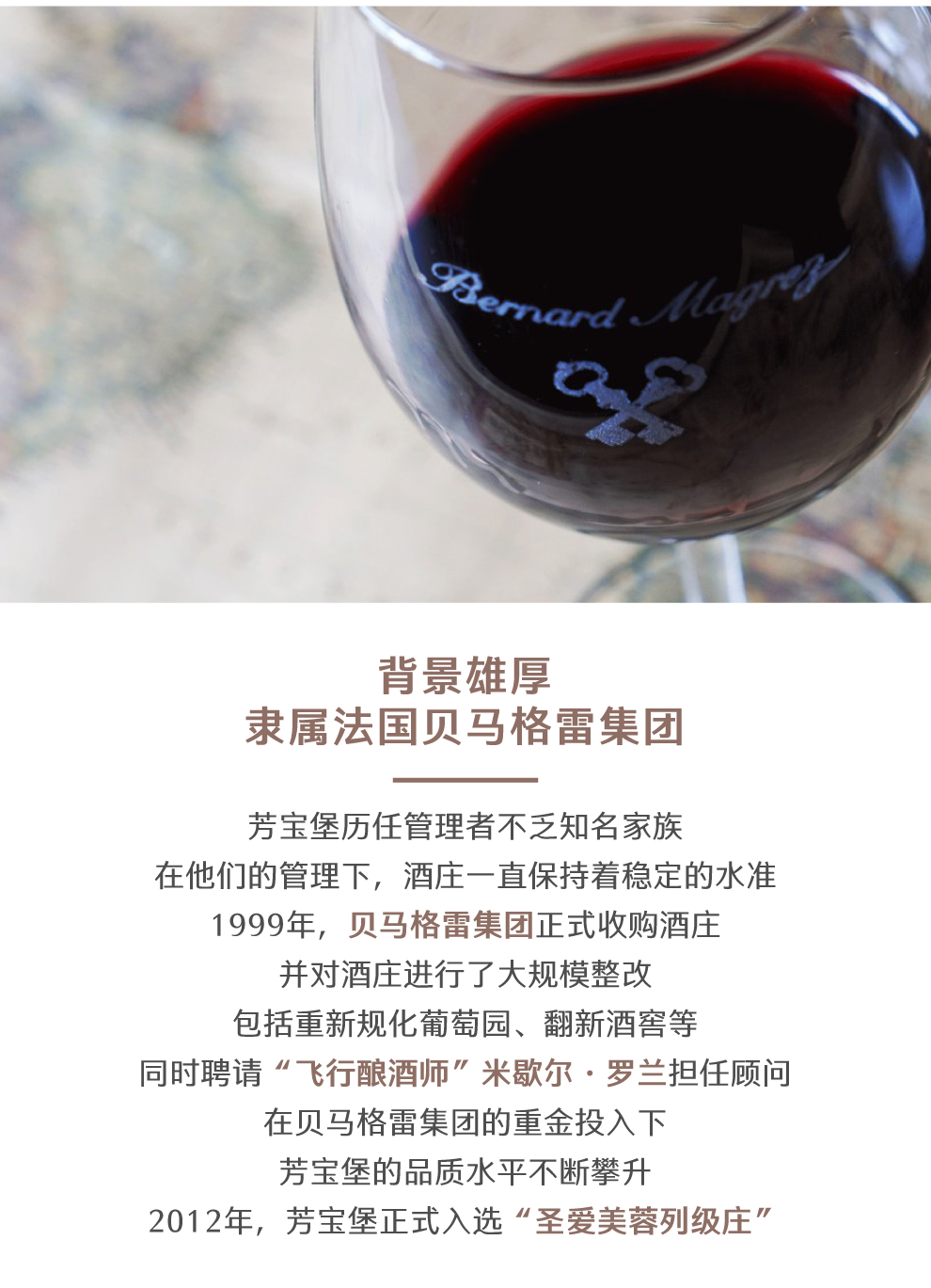 直到1999年,贝纳德•马格雷(Bernard Magrez)先生购买了此庄园并一直经营至今。贝纳德•马格雷先生接手后对该庄园进行了大范围的翻新和休整,特别是对于葡萄园的整修让该庄园重获活力。2012年9月,庄园被正式评为圣爱美容列级酒庄。