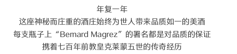 从那时起,为了维护造就佳酿如此盛名的细腻口感,贝尔纳·马格雷一直竭尽全力,让Château Pape Clément (克莱蒙教皇堡)能永葆其隽永品质。
