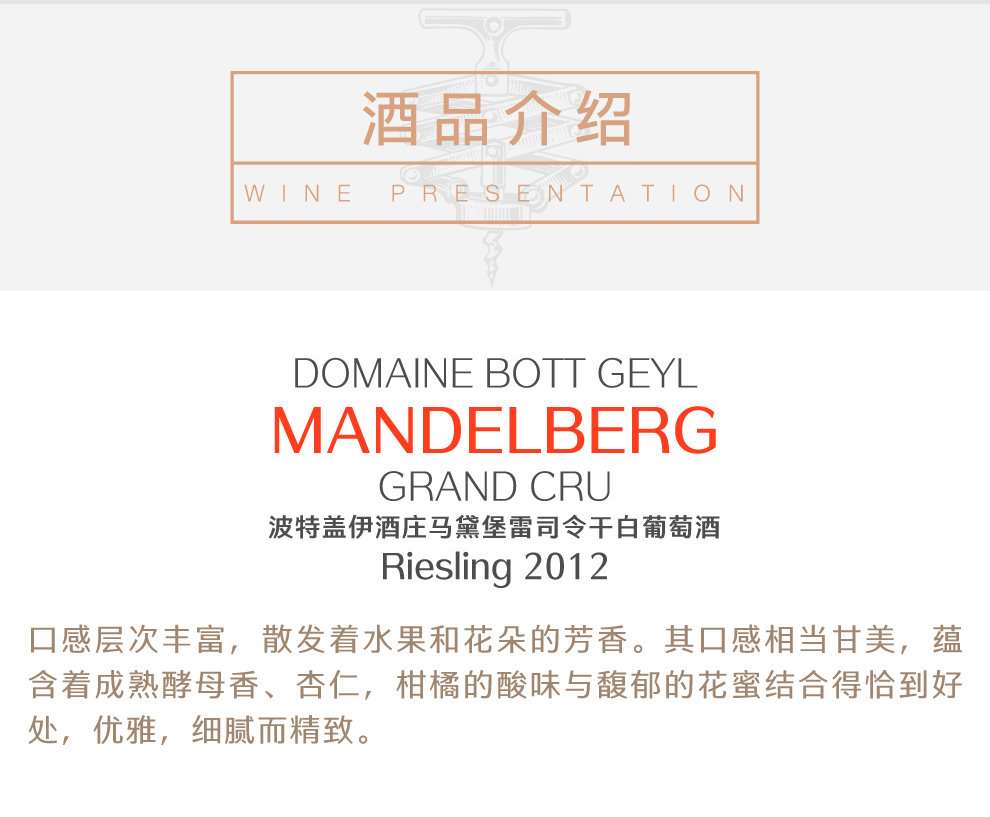 波特盖伊酒庄马黛堡雷司令干白葡萄酒2012