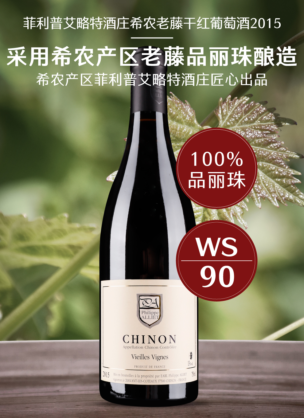菲利普艾略特酒庄希农老藤干红葡萄酒2015