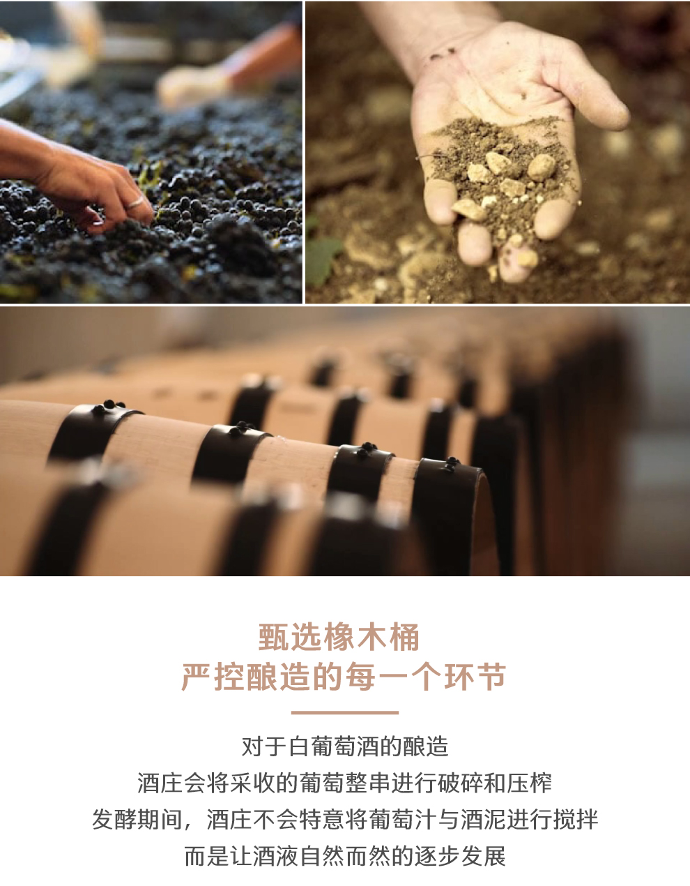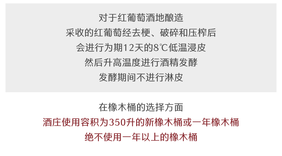 亨利布瓦洛酒庄在酿制白葡萄酒时会将采收的葡萄整串进行破碎和压榨,发酵期间,酒庄不会为了加速葡萄酒的成熟而特意将葡萄的汁液与酒泥进行搅拌。此外,采收的红葡萄经去梗、破碎和压榨后,会进行为期12天的8℃低温浸皮,然后升高温度进行酒精发酵,发酵期间不进行淋皮。葡萄酒熟成时,亨利布瓦洛酒庄使用容积为350升的新橡木桶或一年橡木桶,绝不使用一年以上的橡木桶。此外,酒庄出产的葡萄酒会在橡木桶中熟化18个月,之后在酒庄进行装瓶和包装。