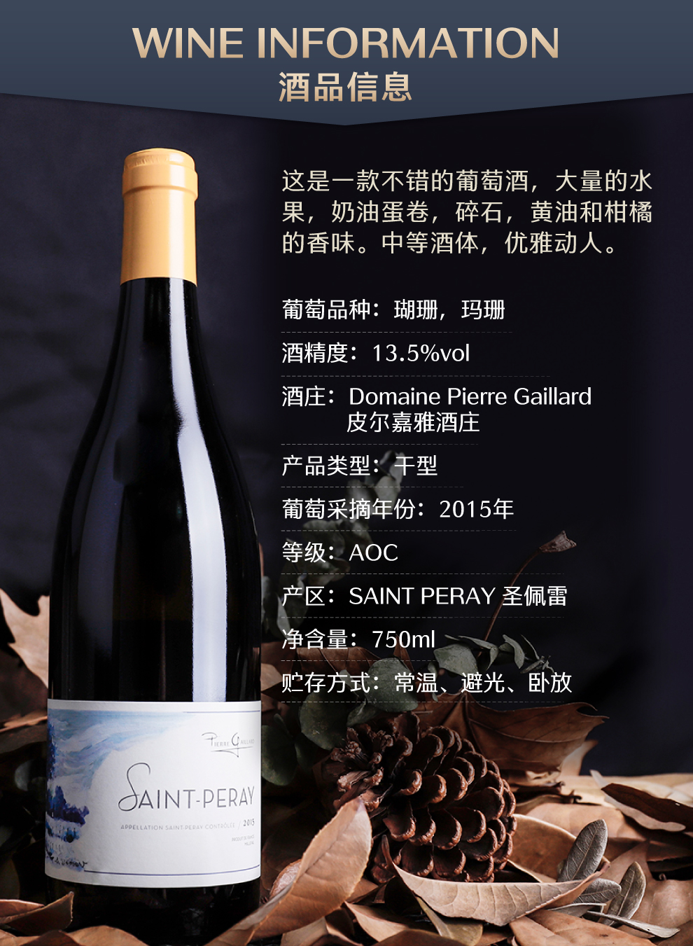 皮尔嘉雅酒庄圣佩雷干白葡萄酒2015