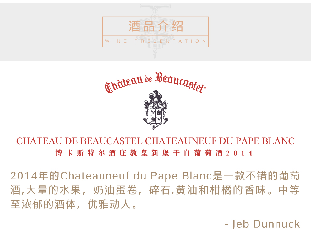 博卡斯特尔酒庄教皇新堡干白葡萄酒2014