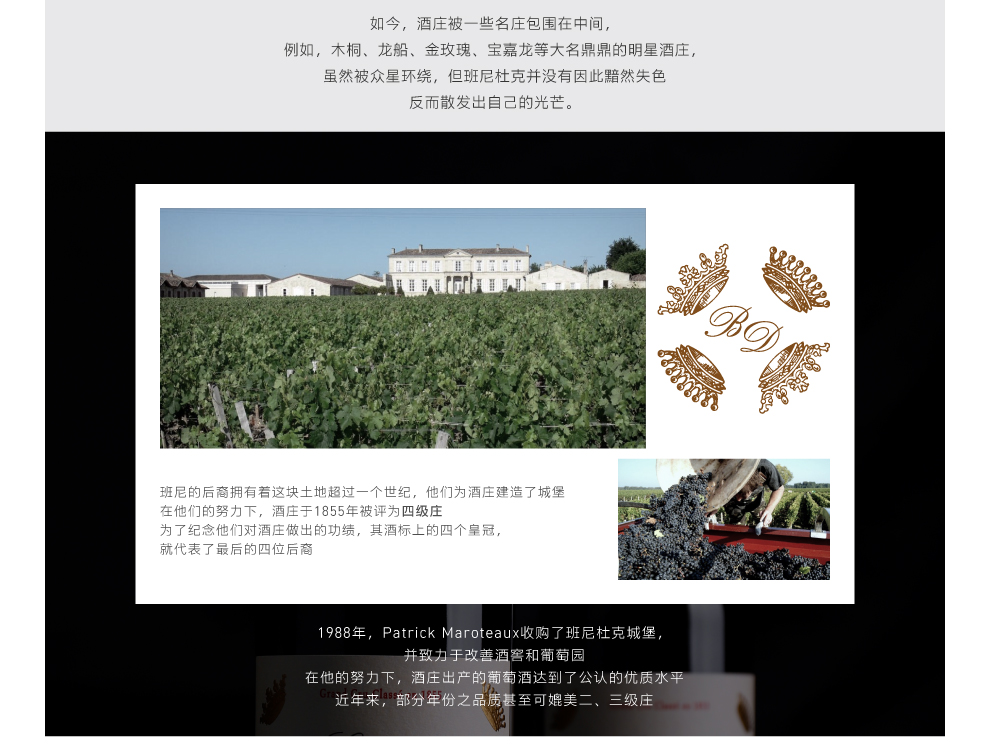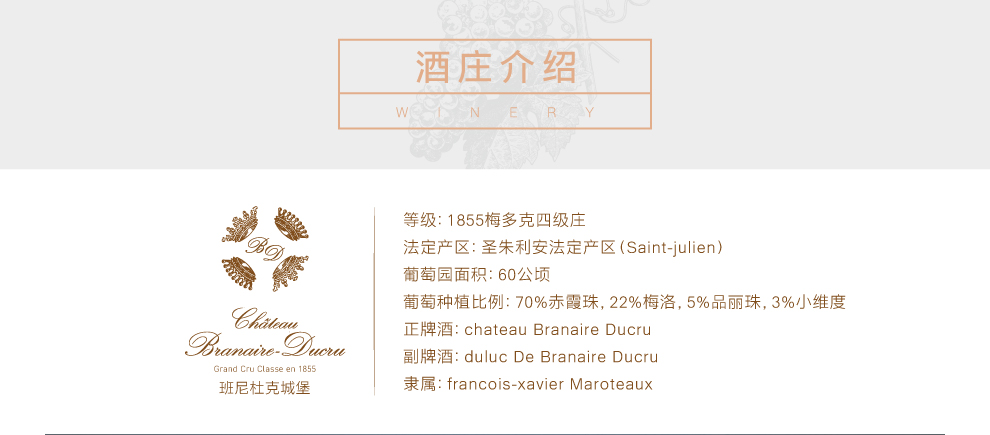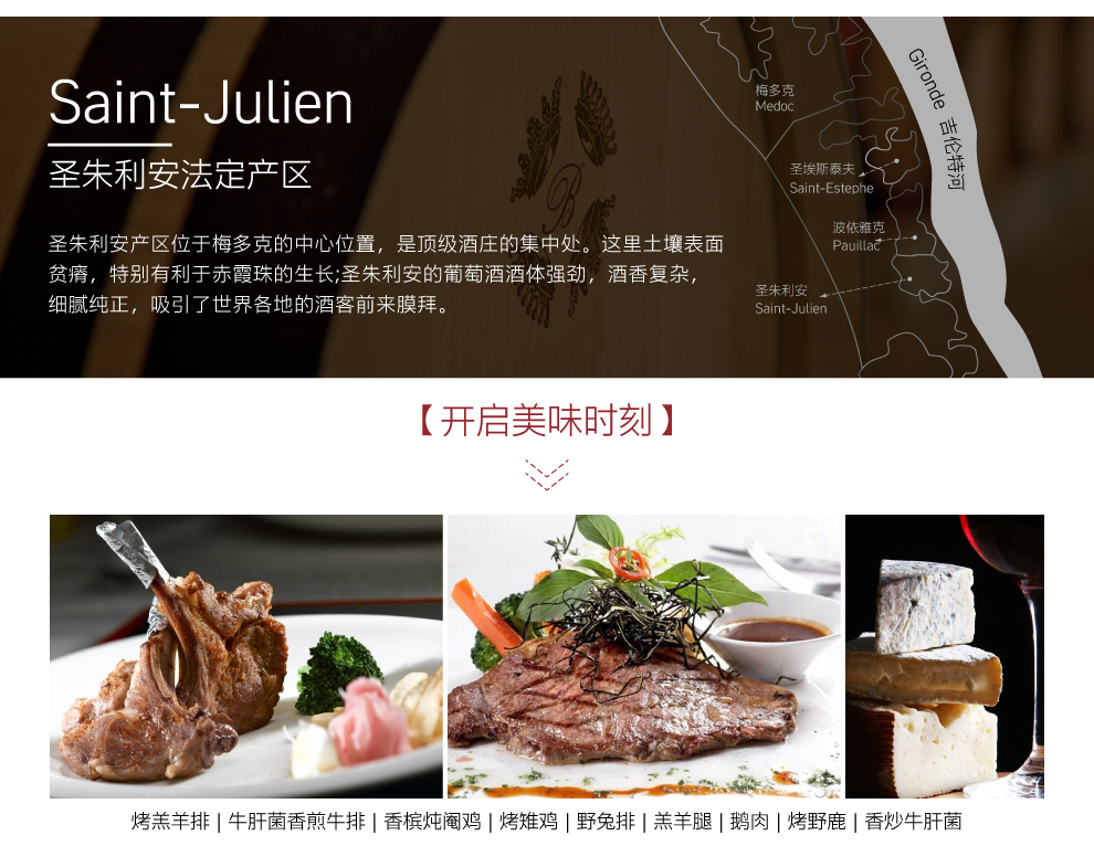 位于法国波尔多(Bordeaux)梅多克(Medoc)的圣朱利安(Saint-Julien)产区,被知名的庄园环抱。