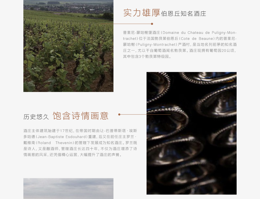 普里尼-蒙哈榭堡酒庄(Domaine du Chateau de Puligny-Montrachet)位于法国勃艮第伯恩丘(Cote de Beaune)内的普里尼-蒙哈榭(Puligny-Montrachet)产酒村,是当地名列前茅的知名酒庄之一,尤以干白葡萄酒闻名勃艮第。酒庄现拥有葡萄园20公顷,其中包含3个勃艮第特级园。