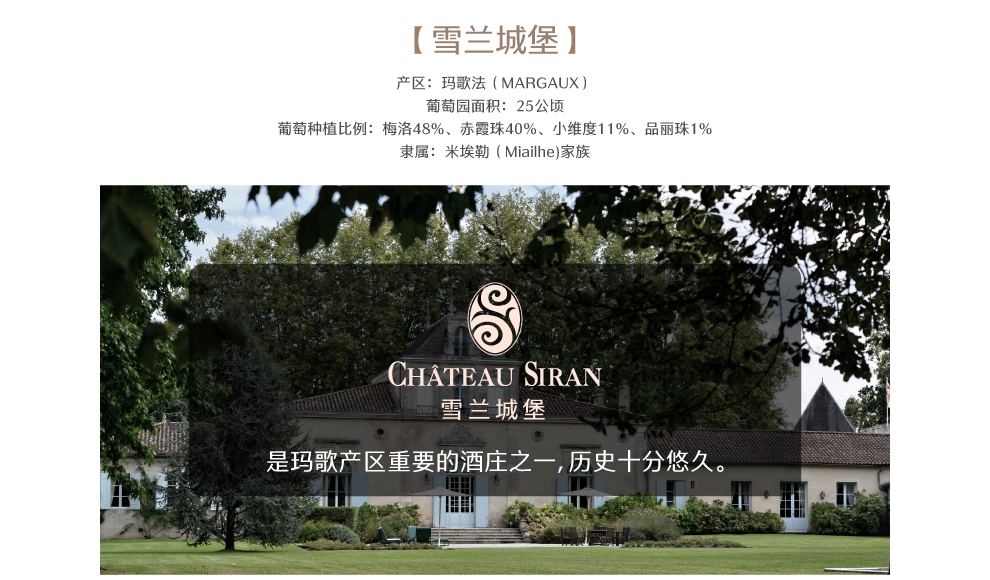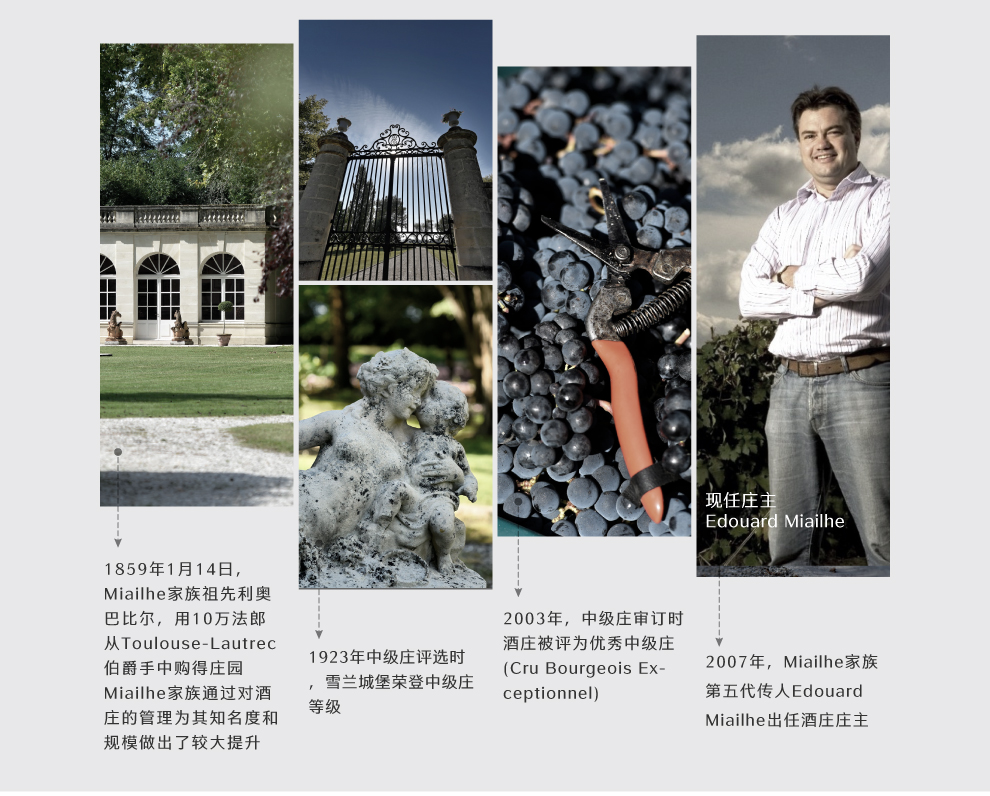 2007年,Miailhe 家族第五代传人Edouard Miailhe 接任酒庄庄主。自此,雪兰城堡是波尔多为数不多的被同一家族掌管达150年的酒庄。