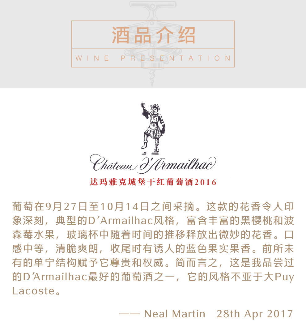 法国达玛雅克酒庄(CHATEAU D’ARMAILHAC)位于一级名庄木桐酒庄和拉菲酒庄隔壁,其相当特殊的地理位置赋予了其不简单的历史渊源。