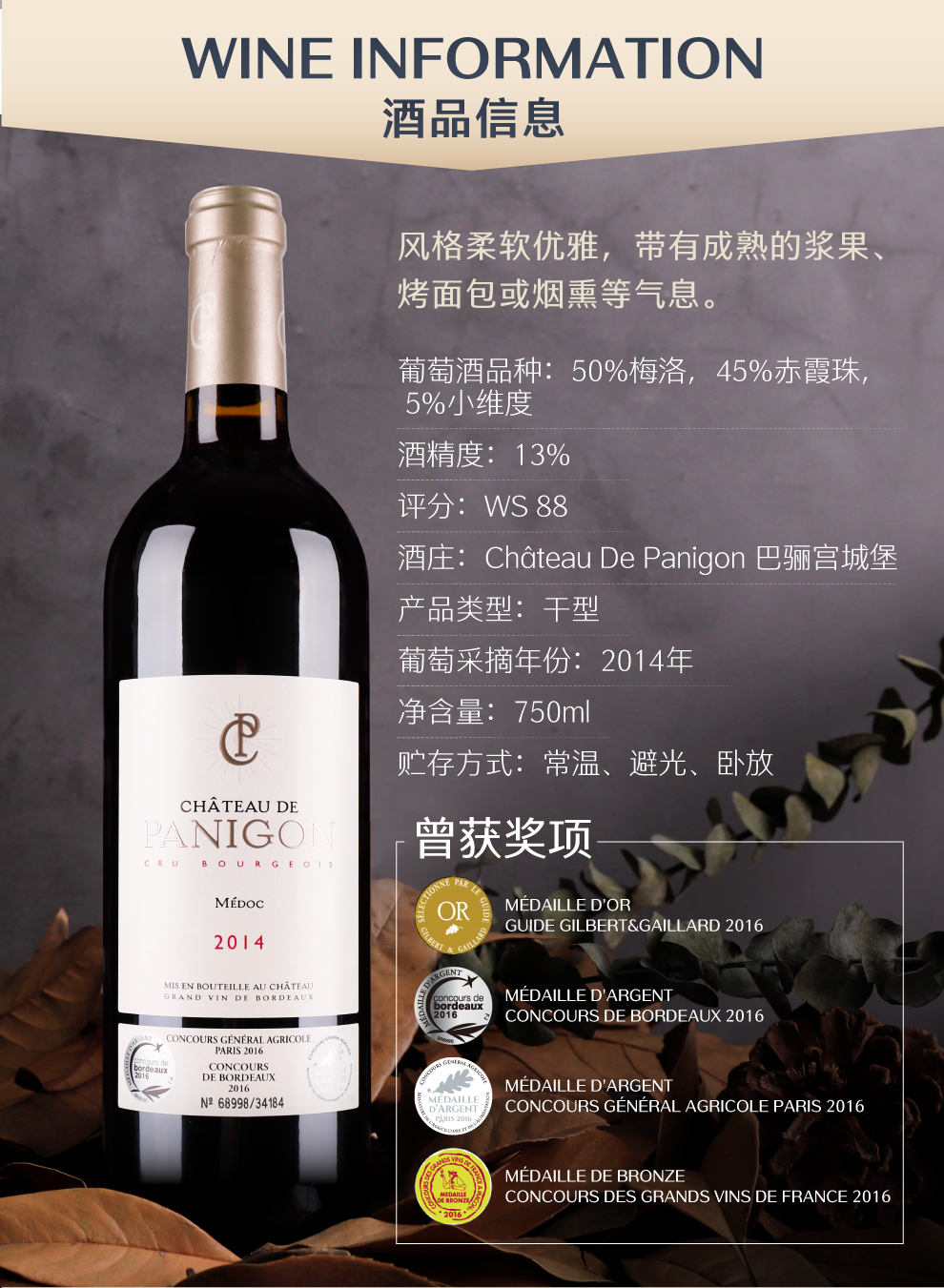 巴骊宫城堡(Chateau de Panigon)是法国波尔多(Bordeaux)梅多克(Medoc)产区的酒庄之一,在中级酒庄联盟(L'Alliance des Crus Bourgeois)2012年发布的中级酒庄(Cru Bourgeois)名单中榜上有名。