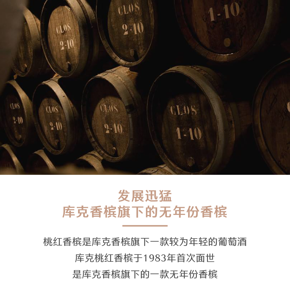 库克酒庄最初被人熟知,多是因为它用一种更为高贵、严肃的方式来为其产品赋予价值——“只在小橡木桶中酿造”。在其它大多数香槟酒庄采用不锈钢桶酿酒的情况 下,库克酒庄可说是现存的唯一一家还以传统方式用小橡木桶做第一次酒精发酵的香槟酒庄。对传统的忠实继承保证了每种酒的特性都发挥得淋漓尽致。使用小橡木桶的另一好处则是透过葡萄酒、橡木与氧气三者间的交互作用,能够自然地减缓酒的进化过程,使库克香槟有着超乎寻常的陈年实力。正是这些采用200年以上树龄的古树手工制成,费时且成本昂贵,容量为205升的小橡木桶,赋予了库克香槟与众不同的口感。来自50余个葡萄园最优质的葡萄在小橡木桶中进行首次发酵后, 会在每个木桶上标注相应的葡萄产区及葡萄品种,最后制成约250余种的当年风格各异的葡萄酒用于调配完美的库克香槟。