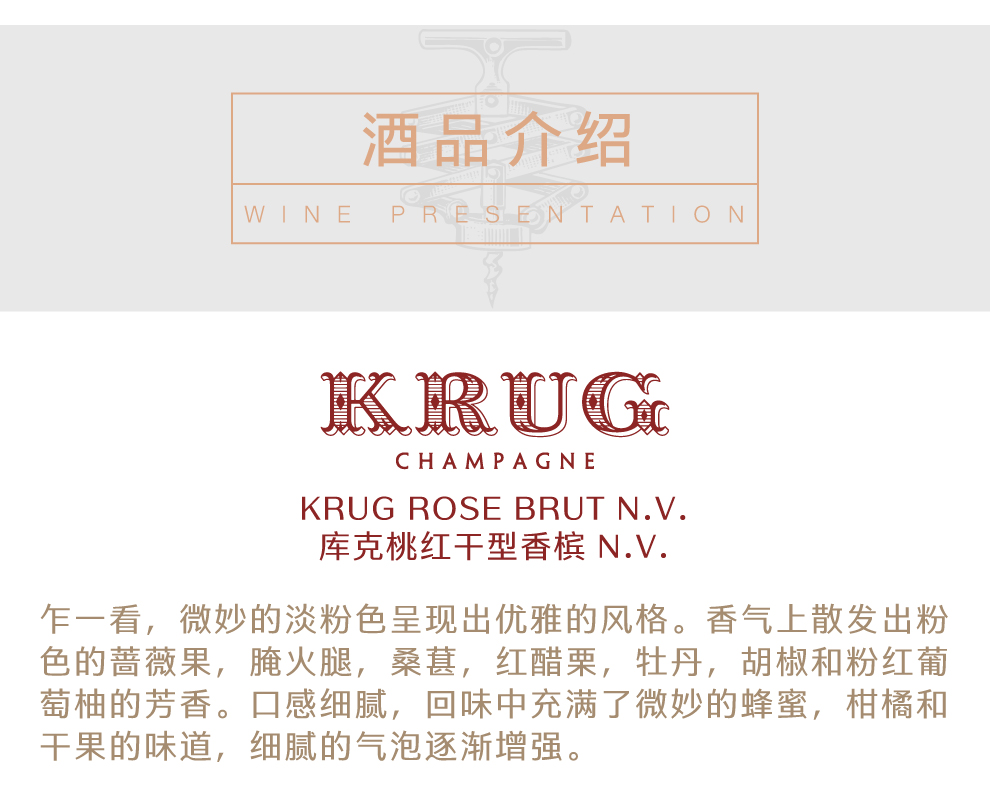 库克酒庄旗下有六款超凡的香槟:库克陈年香槟(Krug Grande Cuvee)、库克桃红香槟(Krug Rose)、库克年份香槟(Krug Vintage)、库克收藏家香槟(Krug Collection)、库克罗曼尼钻石香槟(Krug Clos du Mesnil)以及库克安邦内黑钻香槟( Krug Clos d'Ambonnay)。