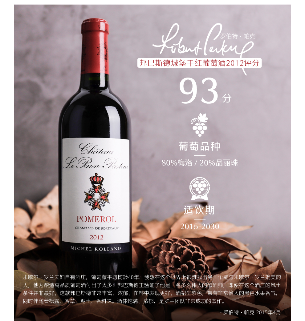 从葡萄园到最后装瓶的每一步都经过深思熟虑的安排,所有的步骤都是为了能更好的呈现Le Bon Pasteur的复杂度。