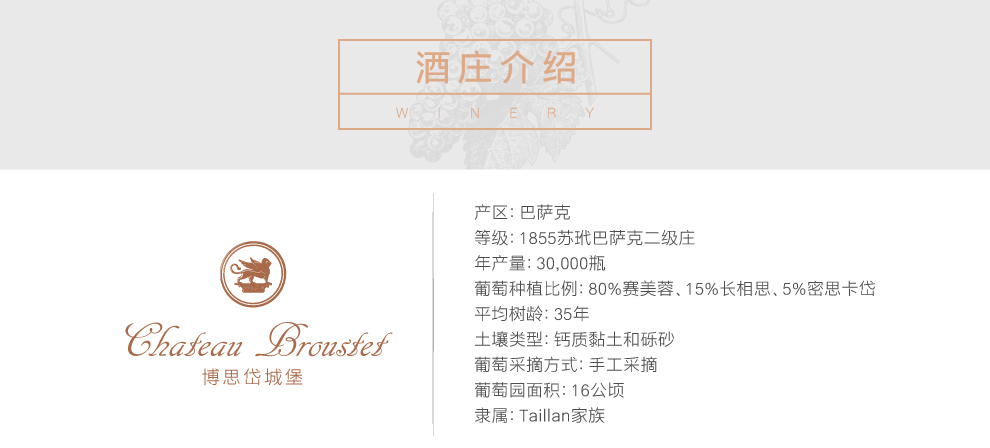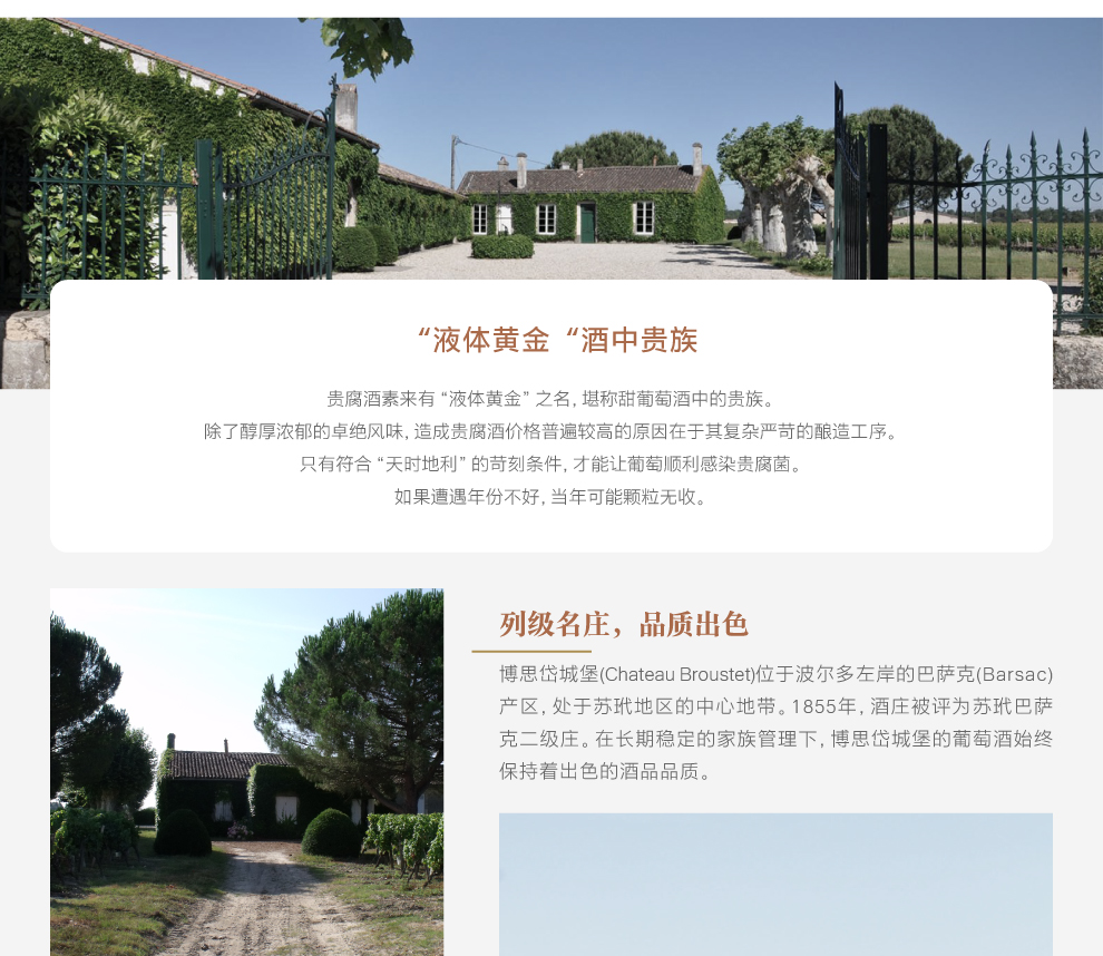 博思岱酒庄(Chateau Broustet)位于波尔多左岸的巴萨克(Barsac)产区,处于苏玳地区的中心地带。