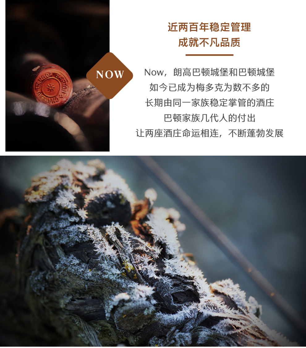朗高巴顿城堡和巴顿城堡如今已成为梅多克为数不多的长期由同一家族稳定掌管的酒庄,巴顿家族几代人的付出让两座酒庄命运相连,不断蓬勃发展。