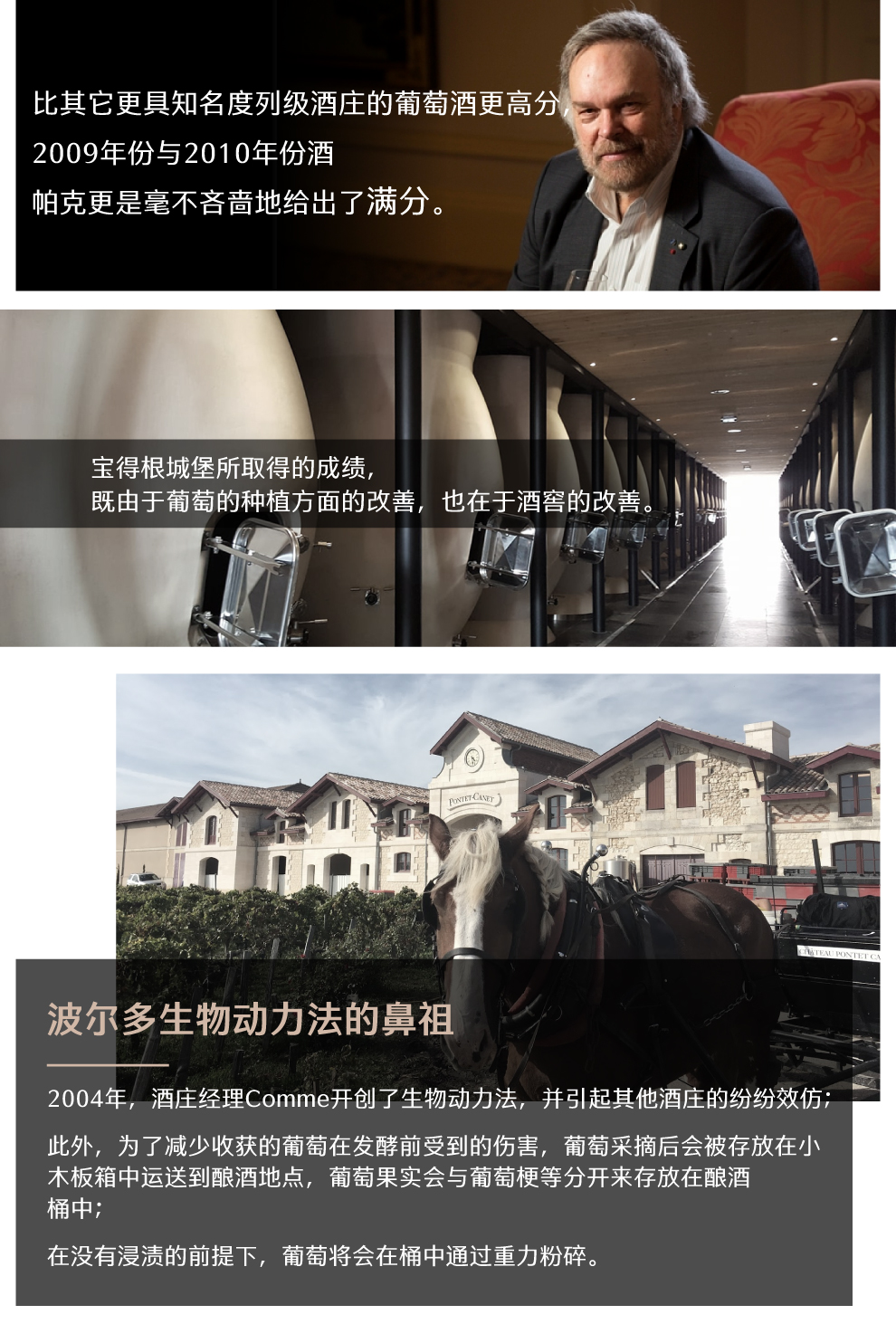 在过去的十年里, Pontet-Canet葡萄酒可说是最热门的波尔多红酒之一。葡萄酒权威Robert Parker与Wine Spectator都持续给予这支酒95分以上的肯定,比其它更具知名度列级酒庄的葡萄酒更高分。2009与2010帕克更是毫不吝啬地给出了满分。