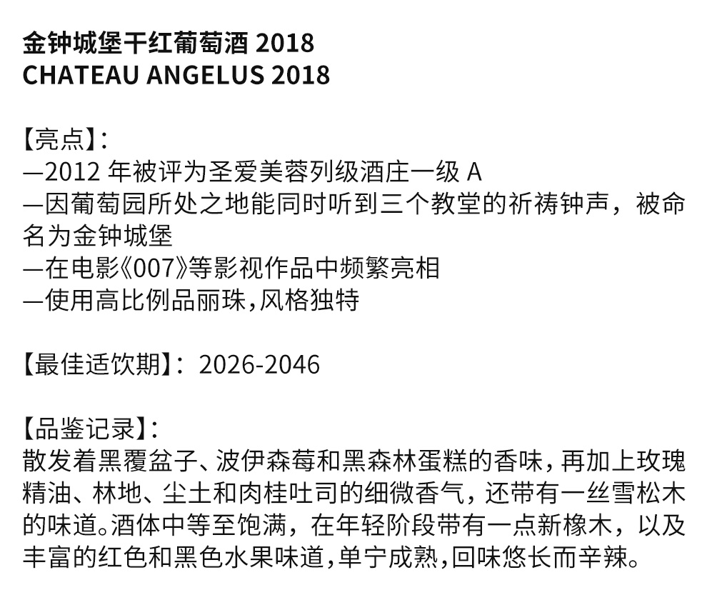 5. 因酒庄陈酿、装瓶及发货时间各不相同,2024年份新酒预计在2027年初至2027年末陆续到货,2023年份新酒预计在2026年初至2026年末陆续到货,2022年份新酒预计在2025年初至2025年末陆续到货,2021年份新酒预计在2024年初至2024年末陆续到货,其他年份酒品到货时间详见酒品购买页面标注。