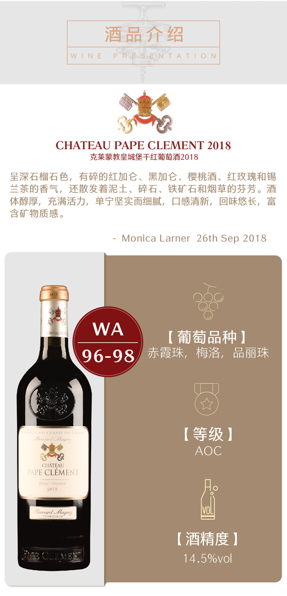 不懈的努力,不断地自省,卓越的产地,这一切都是Château Pape Clément (克莱蒙教皇堡)不断进步的原因所在,正因如此,我们才能每年为红酒爱好者们带来一个又一个惊喜。