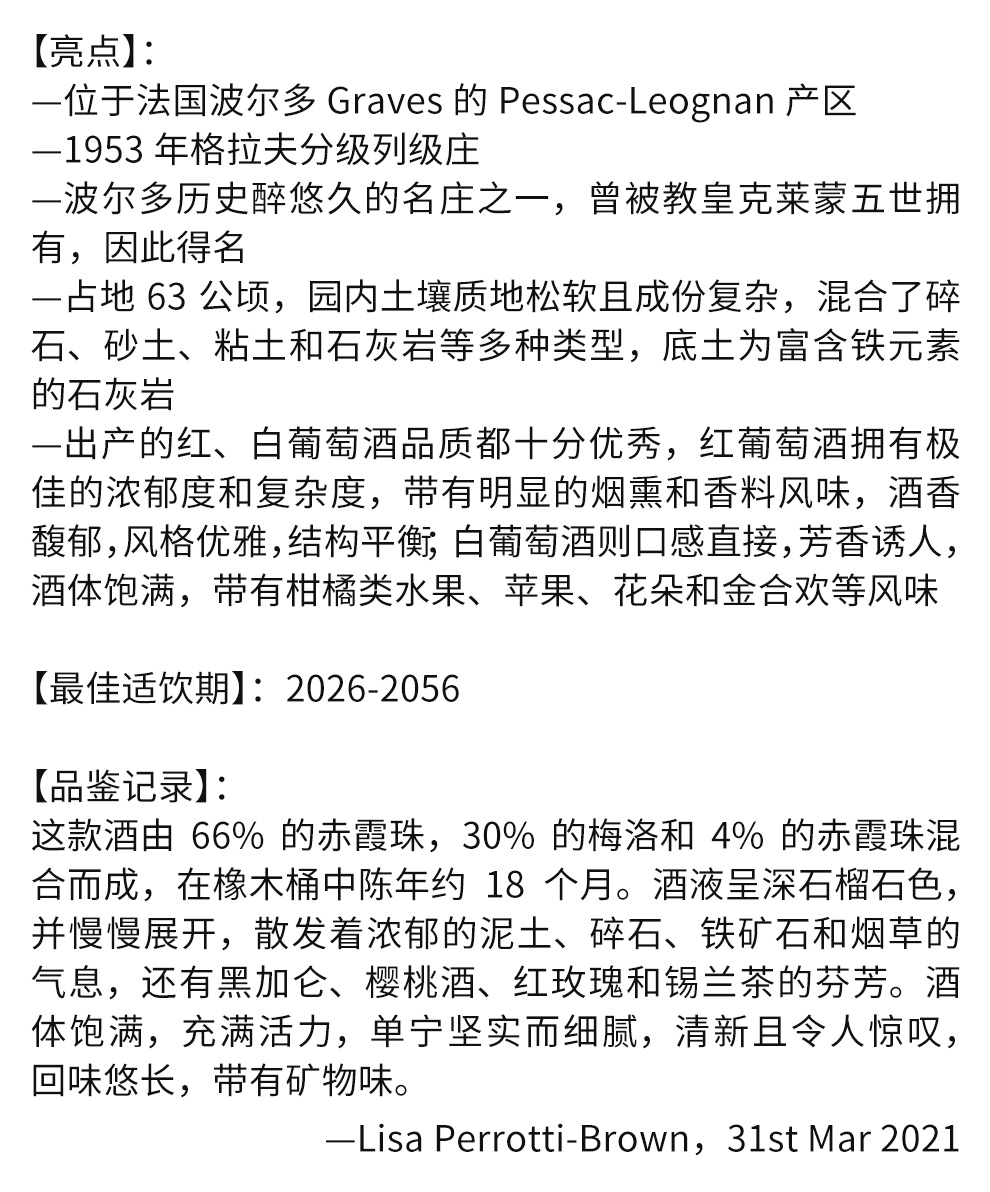 5. 因酒庄陈酿、装瓶及发货时间各不相同,2024年份新酒预计在2027年初至2027年末陆续到货,2023年份新酒预计在2026年初至2026年末陆续到货,2022年份新酒预计在2025年初至2025年末陆续到货,2021年份新酒预计在2024年初至2024年末陆续到货,其他年份酒品到货时间详见酒品购买页面标注。