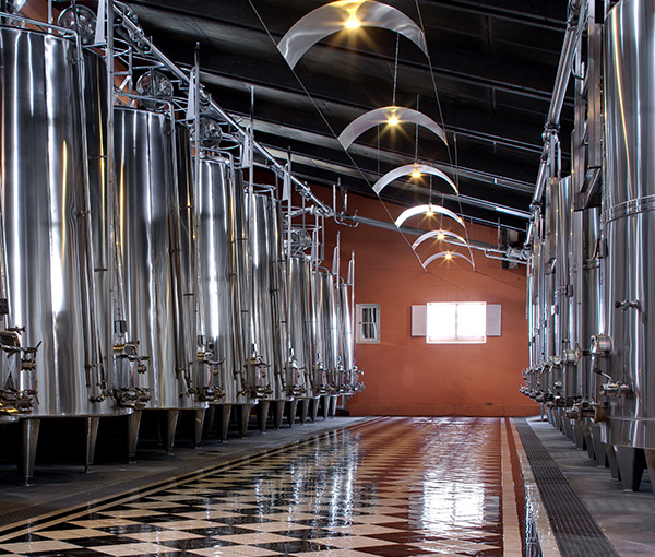 从1994年开始,手工采摘的葡萄收成放在塑料小筐里面运送到酒庄。首先进行第一遍手工筛选,分拣以后的葡萄串进入除梗机,梗粒分离后的葡萄随之进入光学筛选机做第二次分拣,然后破皮入罐。分地块采摘是为了分地块发酵,56个精心定制的不锈钢发酵罐能够充分满足生产的需要,其中27个是双层外壁的新型发酵罐。